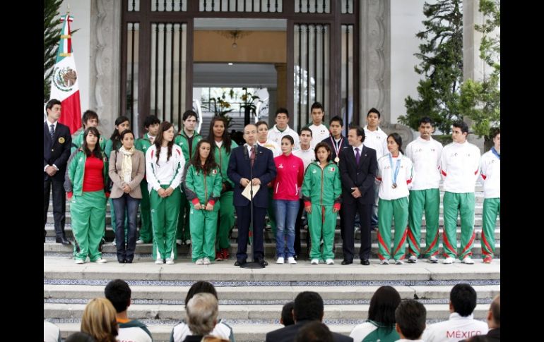 Deportes | El presidente de la república recibió a medallistas de Mundiales y Universiada Son medallistas ejemplo para jóvenes: Calderón El presidente de la república recibió a medallistas de Mundiales y Universiada en 'Los Pinos' Por: NTX 6 de septiembre de 2011 - 09:23 hs CIUDAD DE MÉXICO (06/SEP/2011).- El Presidente Felipe Calderón recibió a deportistas ganadores de medallas en Mundiales Juveniles y en la Universiada Mundial 2011, y confió en que su ejemplo de medallistas y campeones 'se propague verdaderamente en toda la juventud'. 'Quiero agradecerles el ejemplo que representan para otros jóvenes de México. Ese México que, insisto, yo veo que vendrá, un México mucho más combativo, mucho más decidido, con una disciplina personal que los lleva al triunfo', enfatizó el mandatario. Destacó la importancia de que más allá de participar o no en un torneo mundial, una universiada u olimpiada, se pueda promover el deporte como una práctica cotidiana y habitual entre todos los mexicanos, en particular los jóvenes. El Ejecutivo federal recibió a los medallistas en su despacho, conversó con ellos, y después salieron a la Escalinata de la Residencia Oficial de Los Pinos para ofrecer mensajes a la prensa. Calderón Hinojosa comentó que se acerca un reto muy importante para México, que son los Juegos Panamericanos, que se celebrarán en octubre y de los que el país será anfitrión. Agregó que muchos de estos jóvenes medallistas participarán en esa justa y habrá una gran representación mexicana, por lo que se prevé obtener un récord de medallas en Juegos Panamericanos para México. El Presidente Felipe Calderón señaló que los mexicanos estarán apoyando el papel de sus deportistas, a quienes pidió: 'no se pongan nerviosos nada más, esta es su casa, están jugando de locales y sabemos de su preparación, de su disciplina y de su esfuerzo'. Además les recordó a los jóvenes que ya tienen 'mucho colmillo', es decir mucha experiencia, y que están 'bien fogueados' en eventos internacionales, en campeonatos mundiales, en universiadas, en panamericanos y en centroamericanos. El Ejecutivo federal destacó que existe una buena generación de atletas mexicanos que están poniendo muy en alto el nombre de México y les pidió que sigan adelante 'sacando la casta'. Además, puntualizó, los deportistas universitarios hacen un trabajo 'doble', porque además de entrenar se dedican a estudiar, lo cual es un mérito admirable, que les rendirá muchos frutos en su vida y en la de su familia. Temas Felipe Calderón Universiada Deporte Amateur Lee También Modernizarán pista de BMX en Jardines Alcalde Este es el mejor momento del día para entrenar fuerza, según expertos Jaecoo 5: Una SUV de aventura y pet friendly Sociales: GDL Open AKRON WTA 500, se vive una gran final Recibe las últimas noticias en tu e-mail Todo lo que necesitas saber para comenzar tu día Registrarse implica aceptar los Términos y Condiciones