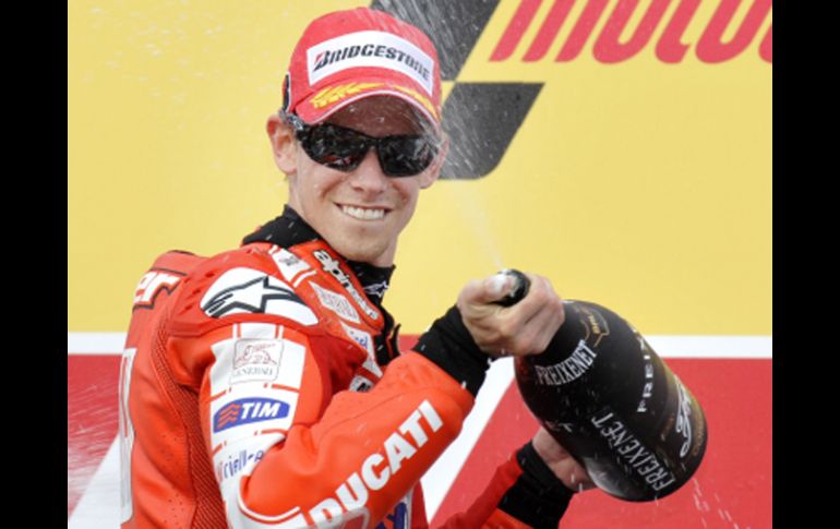 Deportes | Jorge Lorenzo queda cuarto y se acerca al título Stoner se impone en el GP de Japón El motociclista australiano cruzó la línea de meta por delante de Andrea Dovizioso y Valentino Rossi Por: AFP 3 de octubre de 2010 - 03:30 hs Stoner, que partió tercero en la parrilla de salida, dominó el Gran Premio nipón de principio a fin. AFP / MOTEGI, JAPÓN (03/OCT/2010).- El australiano Casey Stoner (Ducati) ganó este domingo, en el circuito de Motegi, la carrera de MotoGP del Gran Premio de Japón, por delante de los italianos Andrea Dovizioso (Honda) y de Valentino Rossi (Yamaha). Por su parte, Jorge Lorenzo, de Yamaha, dio un nuevo paso hacia el título del Mundial este domingo, ocupando la cuarta posición. Tras la prueba disputada en Motegi, Lorenzo cuenta con 69 puntos de ventaja respecto a su inmediato perseguidor, Dani Pedrosa, que se lesionó el viernes. Pedrosa es baja ya que se fracturó la clavícula en los entrenamientos en Motegi, por lo que Lorenzo podría asegurarse el título mundial en la próxima cita, en el circuito de Sepang (Malasia), el próximo domingo. En Motegi, Stoner, que partió tercero en la parrilla de salida, dominó el Gran Premio nipón de principio a fin, sacando ventaja desde la primera curva a sus rivales, haciéndose con una primera posición que no dejó en toda la carrera. "Intentamos tener una moto estable desde el principio del fin de semana, pero tuvimos muchos problemas con los frenos. Todo fue un poco un desastre", pero "esta mañana, en el calentamiento, intentamos otra configuración" técnica en la moto " y "funcionó", explicó Stoner tras su victoria. "Fue una bonita victoria para mí, porque Andrea (Dovizioso) se aferró durante toda la carrera, me mantuvo bajo presión, cuando lograba un poco de distancia, se acercaba, no pude soltarle", adujo. Dovizioso pisó los talones al australiano durante toda la carrera, pero nunca estuvo lo suficientemente bien posicionado para atacar a Stoner, que ya se impuso esta temporada en el Gran Premio de Aragón, el pasado 19 de septiembre, en el circuito de Alcañiz. "El ritmo de Casey fue impresionante. Lo intenté al 100% y no tuve la posibilidad de atacar para superarle. Fui al límite", reconoció el italiano. La carrera en Motegi estuvo animada al final por la batalla que libraron los dos pilotos de Yamaha, Rossi y Lorenzo, por la tercera posición. Éstos llegaron a tocarse en varias ocasiones, corriendo el riesgo de chocar por subirse al podio, cosa que hizo, al final, el experimentado Rossi, que parece estar recuperado de sus lesiones. "Es muy importante para mí volver a subir al podio. Esta tercera posición me dio satisfacción. Jorge estaba por delante mía, no podía adelantarle de inmediato y perdimos a Casey y Andrea. Luego cuando lo adelanté, estábamos lejos", comentó Rossi, aludiendo a su compañero de escudería. "Libramos una gran batalla, me gustó mucho. Bravo por él también", adujo el italiano. Antes de la carrera de MotoGP, el español Toni Elías (Moriwaki) ganó la de Moto2, por delante de su compatriota Julián Simón (Suter) y del checo Karel Abraham (FTR). Con esta victoria, el piloto español de Moriwaki reforzó su liderato en el Mundial de Moto2, pues suma un total de 246 puntos tras su victoria de este domingo y está en cabeza del campeonato, mientras que Simón le sigue en segunda posición, de lejos, con 168 unidades. En 125cc, el también español Marc Márquez, de la escudería Derbi, hizo lo propio, imponiéndose por delante de su compatriota Nicolás Terol y del británico Bradley Smith, ambos pilotos de Aprilia. En el Mundial de la categoría, Terol es líder con 228 puntos, y Márquez está segundo con 222 unidades, mientras que el también español Pol Espargaró, tercero, cuenta con 215 de puntuación en su casillero. Temas Motociclismo Moto GP Casey Stoner Jorge Lorenzo Lee También Jetour Soueast Guadalajara inaugura frente a Plaza Galerías ¿Eres tú, Jorge Campos? Filtran cómo sería el jersey de portero del Tri para Mundial 2026 Sociales: El Informador inicia una nueva etapa con la moderna imprenta "Doña Stella" IberoMedia Global realiza su primer Encuentro Empresarial Internacional Recibe las últimas noticias en tu e-mail Todo lo que necesitas saber para comenzar tu día Registrarse implica aceptar los Términos y Condiciones