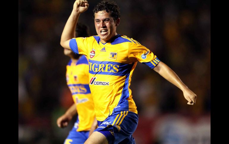 Israel Jiménez celebra el gol que le dio el triunfo a Tigres. MEXSPORT /