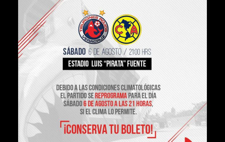 CIUDAD DE MÉXICO (05/AGO/2016).- La Liga MX informó que el partido entre los Tiburones contra América, el cual se llevaría a cabo este viernes, se pospusó debido a las fuertes lluvias en Veracruz por la presencia de la tormenta “Earl”.“El @ClubTiburones - @ClubAmerica será reprogramado bajo las recomendaciones de Protección Civil las inclemencias del tiempo no permiten las óptimas condiciones para llevar a cabo el encuentro”, señaló la Liga en su cuenta de Twitter.El cotejo de la jornada 4 del Apertura 2016 se jugará este sábado en el Luis 'Pirata' Fuente a las 21:00 horas.