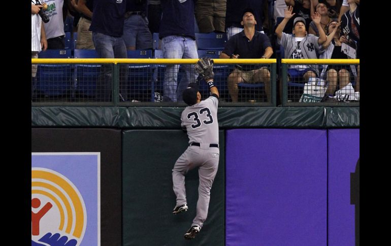 Deportes | La derrotafue fue para el abridor Phil Hughes Tampa termina con racha de los Yankees Las Mantarrayas vencieron por tres carreras a dos a los neoyorquinos, en el juego en el que 'A-Rod' tuvo que esperar para ingresar al 'Club de los 600' Por: AFP 31 de julio de 2010 - 02:39 hs Nick Swisher de los Yankees escala el muro para intentar impedir el jonrón de Matt Joyce. AP / ST. PETERSUBURG, ESTADOS UNIDOS (31/JUL/2010).- El lanzador Wade Davis trabajó siete sólidos episodios y Mart Joyce despachó jonrón de tres carreras, para que los Rays de Tampa Bay sometieran este viernes en las Grandes Ligas de béisbol a los Yankees de Nueva York con marcador de 3x2. El pitcheo de Davis (9-9) obligó al toletero dominicano Alex Rodríguez esperar al menos un día más para ingresar al 'Club de los 600' vuelacercas, ya que se fue de 4-0. Los Rays le rompieron una racha ganadora a los 'Mulos' de 11 triunfos en los últimos 12 encuentros como local, aunque todavía la novena neoyorquina sigue al frente por un juego sobre el conjunto floridano en la División Este de la Liga Americana. Los toleteros Derek Jeter con sencillo impulsor y Nick Swisher con vuelabarda solitario castigaron a Davis, pero sin mayores consecuencias. El descalabro fue para el también abridor Phil Hughes (12-4), quien soportó el toletazo de cuatro esquinas de Joyce, al tiempo que el taponero dominicano Rafael Soriano colgaba el cero en el noveno y se anotaba su salvamento número 29. Anotación por entradas: 1 2 3 4 5 6 7 8 9 C H E - - - - - - - - - - - - NY YANKEES 2 0 0 0 0 0 0 0 0 2 4 0 TAMPA BAY 0 0 0 0 0 3 0 0 x 3 4 0 Temas Beisbol MLB Yankees de Nueva York Mantarrayas de Tampa Bay Recibe las últimas noticias en tu e-mail Todo lo que necesitas saber para comenzar tu día Registrarse implica aceptar los Términos y Condiciones