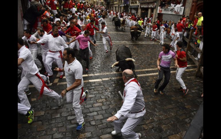 Deportes | En total fueron seis corredores heridos, cinco de ellos por tropezones Termina encierro de Pamplona con un estadounidense corneado Ejemplares de la ganadería Núñez del Cuvillo protagonizaron una emocionante carrera de dos minutos y medio Por: EFE 13 de julio de 2016 - 03:32 hs PAMPLONA, ESPAÑA (13/JUL/2016).- Los toros de la ganadería de Núñez del Cuvillo, ausentes en Pamplona desde 2011, ofrecieron hoy un encierro rápido y emocionante con un sólo herido por asta de toro entre los corredores. Los servicios sanitarios informaron de que seis corredores fueron trasladados al hospital, uno de ellos, un estadounidense, herido por asta de toro, y otros cinco por contusiones. El herido por asta en su pierna izquierda es M.L.O., de 39 años, aunque su estado no es grave. Como es tradicional en todos los días de la fiesta, a las 8 de la mañana (6:00 GMT), se producen los llamados encierros, una carrera de unos 800 metros que se realizan en apenas tres minutos, en la que los mozos corren delante de los toros para llevarlos hasta la plaza donde luego se celebra una corrida. La carrera de hoy, que duró dos minutos y medio, tuvo menos corredores que otros días, posiblemente por la lluvia que cayó sobre la ciudad hasta una hora antes del encierro, aunque no afectó al normal discurrir de éste gracias al líquido antideslizante que días atrás se repartió por varios tramos y que reduce los resbalones de mozos y animales. Tras escucharse los tres cánticos de los mozos pidiendo protección a San Fermín y las campanadas de la Iglesia de San Cernin, estalló el cohete que abre la puerta de los corrales de Santo Domingo, por donde salió la manada, compuesta por los toros de Núñez del Cuvillo y un grupo de cabestros (toros mansos que guían a los bravos). Desde el principio, lo seis bravos abrieron la carrera y uno de ellos, a la mitad del recorrido barrió el vallado y varios corredores cayeron al suelo, momento en el que uno de ellos fue enganchado por las astas y volteado. La mayoría de la manada corrió rápido y en fila, sin prestar atención a los corredores, algunos de los cuales hizo contacto físico con los astados al acercarse a ellos demasiado. La carrera finalizó en la plaza de toros, donde los astados serán lidiados por la tarde. Temas Europa Toros España Lee También Isaac Fonseca busca revancha y triunfo en la “Corrida de las Luces” Sociales: Domingo en los toros, concluye la primera parte de la Temporada Grande 2025 España consigue su boleto a los cuartos de final del Mundial Sub-20 Derrumbe de edificio en Madrid deja cuatro desaparecidos y tres heridos Recibe las últimas noticias en tu e-mail Todo lo que necesitas saber para comenzar tu día Registrarse implica aceptar los Términos y Condiciones