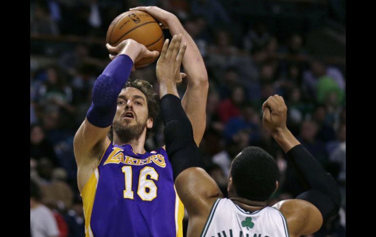 Deportes | Pau Gasol encestó 24 puntos, recuperó 13 rebotes y tuvo seis asistencias para LA Termina mala racha de Lakers y vencen a Celtics Pau Gasol encestó 24 puntos, recuperó 13 rebotes y tuvo seis asistencias para Los Angeles Por: AP 17 de enero de 2014 - 21:50 hs Jared Sullinger (7) intenta detener un disparo de Pau Gasol (16), durante el segunda mitad del partido. AP / BOSTON, ESTADOS UNIDOS (17/ENE/2014).- Rajon Rondo regresó de una lesión en la rodilla y falló un tiro de tres puntos para Boston que hubiera enviado el partido a tiempo extra, lo que permitió a los Lakers de Los Angeles derrotar el viernes 107-104 a los Celtics. El español Pau Gasol encestó 24 puntos, recuperó 13 rebotes y tuvo seis asistencias para Los Angeles en 35:31 minutos en la cancha. Kendall Marshall terminó con 19 puntos y 14 asistencias. Ryan Kelly anotó 20 y Wesley Johnson agregó 11 puntos y 11 rebotes. Marshall encestó un triple cuando quedaban 69 segundos del partido para dar a los Lakers la ventaja. Kelly agregó un par de tiros libres cuando restaban 9,4 segundos y los Lakers acabaron con su racha de seis derrotas. Kelly Olynyk anotó 25 puntos para Boston. Rondo, que estuvo limitado a 20 minutos en su primer partido desde que se desgarró el ligamento cruzado anterior el 25 de enero de 2013, sumó ocho puntos, cuatro asistencias y dos rebotes. Temas NBA Basquetbol Lakers de Los Ángeles Celtics de Boston Lee También Dodgers, entre la angustia y la gloria Astros de Jalisco doblega a Xalapa y se pone a un juego de la Final de Zona Dodgers va a la Serie de Campeonato; Chicago fuerza a quinto juego Astros de Jalisco toma ventaja sobre Xalapa en la semifinal de zona Recibe las últimas noticias en tu e-mail Todo lo que necesitas saber para comenzar tu día Registrarse implica aceptar los Términos y Condiciones