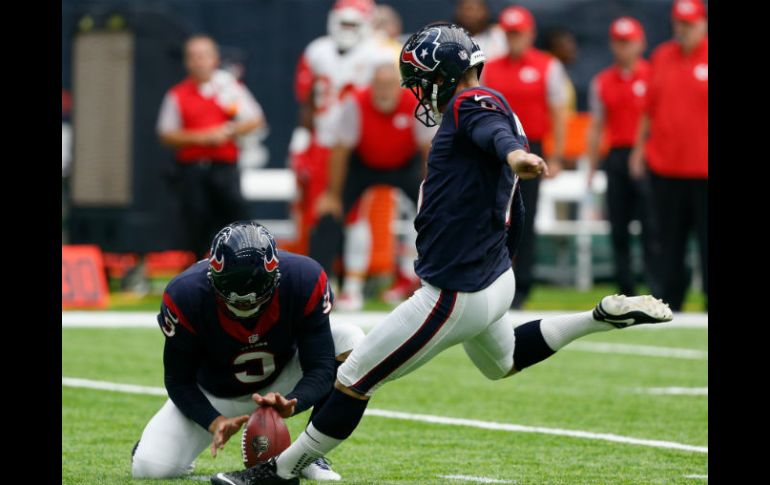 HOUSTON, TEXAS (18/SEP/2016).- DeAndre Hopkins aportó 113 yardas con sus recepciones y Nick Novak convirtió cuatro goles de campo, para que los Texanos de Houston superaran el domingo 19-12 a los Jefes de Kansas City.Novak acertó goles de campo de 32, 24, 31 y 43 yardas. AFP / B. LeveyEl brasileño Cairo Santos atinó tres intentos en el cuarto periodo para reducir la diferencia a 19-12, pero Houston recuperó la patada corta con menos de un minuto por disputarse, para amarrar el triunfo.Los Texanos (2-0) mostraron que son un equipo muy distinto a aquél que cayó de manera vergonzosa por 30-0 ante los Chiefs en enero, durante el partido de comodines. En aquel encuentro, el quarterback Brian Hoyer regaló cinco balones.Kansas City tiene foja de 1-1 en este comienzo de campaña.
