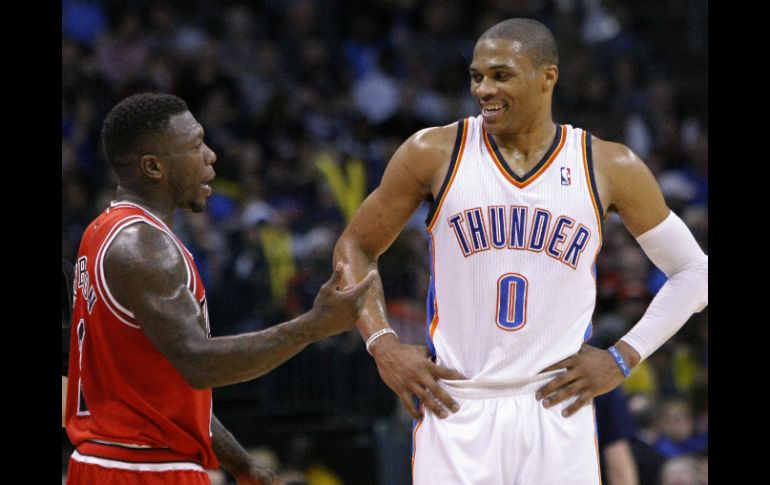Deportes | Oklahoma aplasta por 102-72 a Chicago, con 23 puntos de Westbrook Thunder exhibe a los Bulls Oklahoma aplasta por 102-72 a Chicago, con 23 puntos de Westbrook Por: EFE 25 de febrero de 2013 - 07:56 hs OKLAHOMA, ESTADOS UNIDOS (25/FEB/2013).- El base Russell Westbrook anotó 23 puntos y se encargó de dirigir el ataque balanceado de los Thunder que ganaron por paliza de 102-72 a los Bulls de Chicago. El alero Kevin Durant y el ala-pívot congoleño nacionalizado español Serge Ibaka aportaron un doble-doble cada uno que también ayudaron al triunfo. Durant consiguió 19 puntos y 16 rebotes, mientras que Ibaka logró 17 tantos y capturó diez balones bajo los aros. Ibaka jugó 30 minutos en los que anotó 7 de 12 tiros de campo, incluidos un triple de dos intentos, y acertó 2-2 desde la línea de personal, puso tres tapones y recuperó un balón. La victoria permite a los Thunder (41-15) sumar dos triunfos consecutivos y afianzarse como líderes en la División Noroeste, con 6.5 juegos de ventaja sobre los Nuggets de Denver, que tuvieron jornada de descanso. Los Thunder, que habían permitido un promedio de 113 puntos en cada uno de sus últimos cuatro partidos, esta vez contuvieron la ofensiva de los Bulls, al aceptarles sólo el 29 por ciento de sus tiros de campo (25 de 86). Los Bulls (32-24) tuvieron al alero sudanés Luol Deng y al base Nate Robinson, con 13 tantos cada uno como líderes del ataque y los dos únicos que pudieron tener números de dos dígitos. El escolta reserva italiano Marco Belinelli, el tercer mejor anotador del equipo de Chicago, aportó nueve puntos, y los Bulls sumaron su sexta derrota en los últimos diez partidos, pero se mantienen en el segundo lugar de la División Central. Temas NBA Basquetbol Toros de Chicago Recibe las últimas noticias en tu e-mail Todo lo que necesitas saber para comenzar tu día Registrarse implica aceptar los Términos y Condiciones