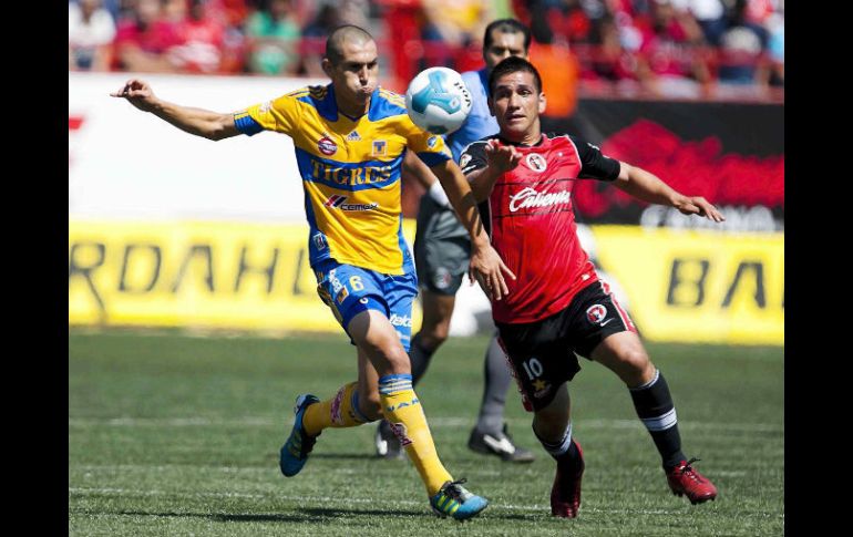 Deportes | Los Xolos entregan un 1-1 en el marcador, no se dejan ganar Tijuana empata con Tigres a un gol Los Xolos entregan un 1-1 en el marcador, no se dejan ganar Por: EL INFORMADOR 2 de octubre de 2011 - 15:17 hs Jorge Torres Nilo de Tigres (I) y Raul Enriquez de Tijuana (D) peleán por el balón dentro del Estadio Caliente. MEXSPORT / LEE EL MINUTO A MINUTO DE ESTE PARTIDO TIJUANA, BAJA CALIFORNIA (02/OCT/2011).-Con un gol del argentino Javier Gandolfi sobre el final del partido, el local Tijuana empató el domingo 1-1 ante los Tigres, en el partido con el que concluyó la undécima fecha del torneo Apertura mexicano. El argentino Lucas Lobos anotó a los 40 minutos y parecía que eso le bastaría a los Tigres, pero a tres del final, en una jugada con pelota detenida, Gandolfi desvió con la pierna derecha un centro de su compatriota Mauro Gerk para decretar la igualdad. Tigres, que la semana pasada perdió su invicto, llegó a 18 puntos y se colocó en el tercer lugar de la clasificación general, sólo superado por los Jaguares de Chiapas con 19 y los líderes Pumas con 20. Tijuana, que el verano pasado logró el ascenso a la primera división, sumó ocho puntos y sigue sin poder ganar como local. Figura en el penúltimo lugar de la clasificación, sólo por encima de Atlas que tiene seis. Tijuana fue dominante en los primeros minutos y amenazó con remates del colombiano Dayro Moreno. Pero los Tigres fueron nivelando con las acciones de Lobos y el brasileño Danilinho. La jugada del gol se dio cuando el argentino Damián Alvarez mandó un pase por la banda izquierda para Lobos, quien sacó un disparo raso para superar el lance del portero Cirilo Saucedo. En el complemento los locales volvieron a ser más peligrosos con intentos de Moreno y otro tiro más del argentino Javier Yacuzzi, pero no concretaron sus llegadas. Tigres también pudo dar el golpe definitivo con un par de ocasiones de Alan Pulido. En la primera, Yacuzzi salvó un gol cantado de Pulido al despejar un balón sobre la raya para evitar más daño y luego el delantero estrelló un cabezazo en el travesaño. Temas Futbol Mexicano Tigres Torneo Apertura 2011 Xolos de Tijuana Lee También ¿Cuánto cuestan y dónde comprar boletos para el México vs Ecuador? México vs Ecuador: ¿Quién ganará el partido según la IA? La Champions arrancará con un único partido con el campeón como local Cabo Verde clasifica y estará en una Copa del Mundo por primera vez en su historia Recibe las últimas noticias en tu e-mail Todo lo que necesitas saber para comenzar tu día Registrarse implica aceptar los Términos y Condiciones