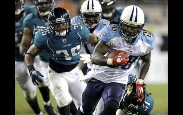 Deportes | Los de Tennessee ponen sus números en 4-2 y están a la par de Houston y Potros Titanes gana y pone triple empate El cuadro de Tennessee vence 30-3 a Jacksonville y comparte la cima de la División Sur de la Americana Por: SUN 19 de octubre de 2010 - 09:06 hs Chris Johnson (der.) fue una de las piezas claves para la victoria de los Titanes. AP / JACKSONVILLE, FLORIDA (18/OCT/2010).- Los Titanes de Tennesse no tuvieron piedad de los Jaguares, que simplemente no vieron la suya en la derrota en el duelo de Lunes por la Noche. Cayeron 30-3 y su quarterback titular, David Garrard, abandonó el partido. Pero Garrard no fue el único, ya que Vince Young, pasador de los Titanes, también tuvo que retirarse del campo de juego tras recibir un fuerte golpe. Young lanzó un pase de anotación a Kenny Britt en la primera ofensiva del encuentro, posteriormente sufrió una torcedura en la rodilla derecha. Kerry Collins tomó su lugar. Garrard no estuvo en ritmo durante el juego, y en el segundo cuarto Will Witherspoon lo sacudió con furia y fue sustituido por Trent Edwards. Con este triunfo, Tennessee permanece en un triple empate en el liderato de la División Sur de la Conferencia Americana con Indianapolis y Houston, todos con marca de 4-2. Collins guió a los Titanes en cinco ofensivas que terminaron en puntos. Tennessee, con tal dominio necesitó despejar el ovoide durante los 43 minutos finales del duelo. El corredor Chris Johnson tuvo una de sus típicas tardes y consiguió escaparse 35 yardas hasta zona prometida con 1:40 minutos antes de que finalizara este compromiso y terminó con 111 yardas en 26 acarreos. Edwards careció de la misma suerte que Collins como suplente de Garrard. En tres series ofensivas que dirigió dentro de la yarda 20 de los Titanes, los Jaguares perdieron dos veces el balón y tan sólo obtuvieron un gol de campo corto, ejecutado por Josh Scobee. Collins lanzó un pase de anotación de dos yardas al ala cerrada Bo Scaife y Rob Bironas se adjudicó tres goles de campo, de 26, 33 y 36 yardas. Kerry culminó con 11 envíos completos de 16 para 110 yardas y un touchdown, mientras su contraparte Trent concretó 14 de sus 24 espirales para una ganancia de 140 yardas, no consiguió anotaciones y fue interceptado en dos ocasiones. La defensiva de Tennessee contuvo al corredor de los Jaguares, Maurice Jones-Drew, a quien sólo le permitieron 57 yardas. Además tuvieron dos capturas, tres intercepciones y recuperaron un balón suelto. Temas NFL Futbol Americano Jaguares de Jacksonville Titanes de Tennessee Lee También Los Chiefs juegan como en antaño Sensei rojinegro Futbol hoy 13 de octubre de 2025: ¿Dónde ver los partidos en vivo? Así se jugarán las Semifinales del Mundial Sub-20 Recibe las últimas noticias en tu e-mail Todo lo que necesitas saber para comenzar tu día Registrarse implica aceptar los Términos y Condiciones