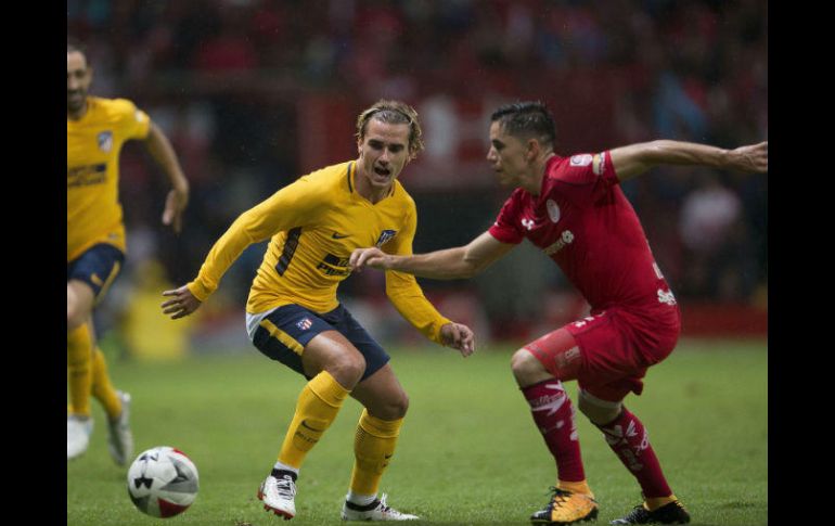 TOLUCA, EDOMEX. (25/JUL/2017).- Diablos Rojos de Toluca fue incapaz de celebrar con un triunfo el partido por los 100 años de su fundación, al empatar sin goles con Atlético de Madrid, en duelo amistoso disputado en el estadio Nemesio Diez. El festejo por los 100 años del club de futbol Toluca no pudo ser redondo, más allá de que ahí estuvieron los deseos, estos no fueron capaces de ir de la mano con un desempeño adecuado que le mereciera lograr un resultado positivo. La escuadra mexiquense sabía que era su noche frente a un sinodal importante, el cual no estuvo dispuesto a ser comparsa de esta celebración y tomó el juego con total seriedad, en lo que es el inicio de su pretemporada. Diablos Rojos poco pudo hacer al frente, solo en dos ocasiones inquietó la meta rival. La primera al minuto 17, en un centro por izquierda de Gabriel Hauche a primer poste, donde el colombiano Fernando Uribe alcanzó a rematar, pero a un lado. Instantes después, en una acción idéntica, Hauche metió un balón sobre el que Uribe hizo un mal contacto, cuando estaba en una posición de alguna manera cómoda para darle dirección de portería. Mientras los ibéricos, pese a tener en su delantera a Fernando Torres y a Antoine Griezmann, dejaron en claro que este era su primer cotejo de pretemporada y poco hicieron al frente. Para el complemento, el técnico argentino Hernán Cristante mandó a la cancha a Antonio Naelson "Sinha", quien fue el invitado especial de Toluca, en busca de ese jugador que pusiera un balón fino para generar peligro. Mientras los "colchoneros" cambiaron a prácticamente todo su once, lo cual, contrario a lo que sucede normalmente en este tipo de situaciones, para nada los descontroló, pero tampoco le permitió tener más tiempo el esférico ni ser más peligroso. Ambos buscaron ese gol que les diera la victoria, solo que ninguno fue capaz de hacerlo y tuvieron que conformarse con un empate en el festejo de los cien años del Toluca El arbitraje estuvo a cargo de Fernando Guerrero, quien no mostró tarjetas. Alineaciones: Toluca.- Alfredo Talavera, Rodrigo Salinas, Osvaldo González, Santiago García (Juan Delgadillo, 58), Efraín Velarde, Rodrigo López, Antonio Ríos, Gabriel Hauche (Martín Abundis, 74), Pablo Barrientos (Antonio Naelson "Sinha", 46/Carlos Esquivel, 65), Rubens Sambueza y Fernando Uribe (Enrique Triverio, 58). DT Herán Cristante (ARG). Atlético de Madrid (ESP).- Jan Oblak (Miguel Moyá, 46/Axel Werner, 72), Juanfran Torres (Sime Vrsaljko, 46), Stefan Savic (José Giménez, 46), Lucas Hernández (Diego Godín, 46), Filipe Luis (Sergi González, 46), Augusto Fernández (Matías Kranevitter, 46), Gabi Fernández (Thomas, 46), Koke Resurección (Keidi Bare, 46/Rafael Santos, 77), Yannick-Ferreira Carrasco (Nicolás Gaitán, 46), Antoine Griezmann (Ángel Correa, 46) y Fernando Torres (Luciano Vietto, 46). DT Diego Pablo Simeone (ARG).