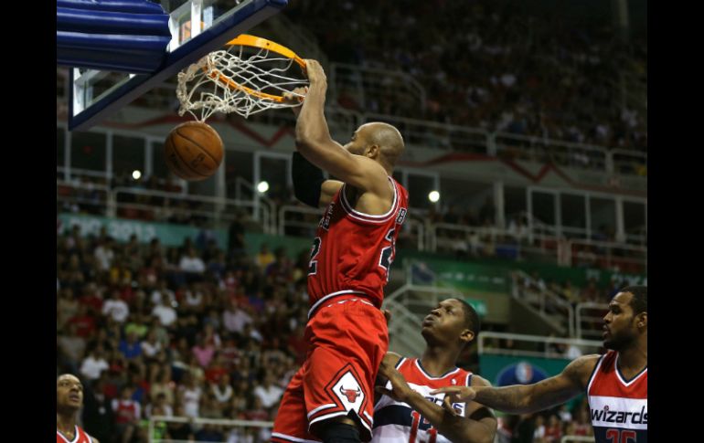 Deportes | En el primer juego de NBA en este país, Chicago le gana 83-81 a Washington Toros de Chicago ganan en Brasil En el primer juego de NBA en este país, Chicago le gana 83-81 a Washington Por: EFE 12 de octubre de 2013 - 20:42 hs Taj Gibson realiza un enceste en el duelo de exhibición que los Toros ganaron en Brasil. EFE / RIO DE JANEIRO (12/OCT/2013).- Los Toros de Chicago frenaron la reacción de los Washington Wizards en el último cuarto y vencieron con un emocionante 83-81 el duelo disputado en el HSBC Arena, de Río de Janeiro, el primero de dos equipos de la Liga Nacional de Baloncesto (NBA) de Estados Unidos en territorio brasileño. Con un escenario completamente atiborrado por los 13 mil 635 espectadores, el público aprovechó para ovacionar en un descanso del partido al eterno ídolo Oscar Schmidt, quien se recupera de la extirpación de un tumor canceroso en su cerebro. El pívot brasileño Nené Hilario, número 42 del equipo de Washington, tuvo una discreta actuación en los 21 minutos que estuvo en la duela y durante su presentación en la previa del partido fue silbado por haberse negado a integrar la selección que disputó y fue eliminada del clasificatorio para el Mundial de España 2014. Los más aplaudidos fueron el armador John Wall, de los Wizards, y el francés Joakim Noah, de los Toros, que en portugués agradeció con un "obrigado" (gracias). El máximo encestador fue Taj Gibson, de los Toros, con 18 puntos. La noche del sábado en Río de Janeiro tuvo todo el "show" de los partidos de la NBA, con las irreverentes mascotas, que esta vez intentaron bailar samba, demostraciones de malabarismo con el balón y el concurso de "clavadas" en los intermedios. Además de Oscar, jugador de la selección brasileña campeona en 1987 en los Juegos Panamericanos de Indianápolis, fueron homenajeados varios integrantes de la dinastía de oro de los Toros de Chicago, como Scottie Pippen, Randy Brown, Horace Grant y John Paxson. Antes de finalizar el primer cuarto, Nené Hilario salió y a partir de ahí los Wizards llegaron a reducir los trece puntos de desventaja y llegaron a igualar 23-23 en el segundo período. Con un partido abierto en la segunda mitad, la marcación fuerte y los tiros libres certeros llevaron a los Toros a tomar de nuevo ventaja, suficiente para triunfar a pesar de la reacción en el último cuarto de los Wizards. Faltando 24 segundos, Gibson marcó el punto número 83 de los Toros y los Wizards, con 81, perdieron la oportunidad de igualar cuando Eric Maynor desperdició un lanzamiento de dos puntos. Ficha técnica:. Toros de Chicago (23+21+29+10): Luol Deng (14), Carlos Boozer (9), Nazr Mohammed (9), Jimmy Butler (11) y Kirk Hinrich (8). Entraron: Taj Gibson (18), Tony Snell (2), Érik Murphy (2), Marquis Teague (4), Mike Dunleavy (6), Mike James (-) y Déxter Pittman (-). Entrenador: Tom Thibodeau. Washington Wizards (18+17+26+19): Jan Vesely (2), Trévor Ariza (9), Bradley Beal (16), John Wall (3) y Nené Hilario (5). Entraron: Trévor Booker (3), Kévin Seraphin (10), Martell Webster (15), Eric Maynor (8), Glen Rice (10) y Josh Childress (-). Entrenador: Randy Wittman. Árbitros: Sean Corbin, Leroy Richardson y Brian Forte. Temas NBA Basquetbol Washington Wizards Toros de Chicago Lee También "Calita" regresa a Guadalajara tras su triunfo en la Nuevo Progreso NFL: Resultados del Monday Night Football Astros se instalan en la final de zona de la LNBP Morante de la Puebla sale por la puerta grande de Las Ventas tras anunciar su retiro (VIDEO) Recibe las últimas noticias en tu e-mail Todo lo que necesitas saber para comenzar tu día Registrarse implica aceptar los Términos y Condiciones