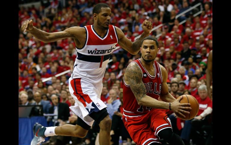 Deportes | Chicago se impone 100-97 a Wizards de Washington Toros recortan su desventaja Chicago se impone 100-97 a Wizards de Washington Por: AP 25 de abril de 2014 - 22:01 hs Imagen de acción del juego. AFP / WASHINGTON, ESTADOS UNIDOS (25/ABR/2014).- Mike Dunleavy anotó 35 puntos, uno menos que la máxima cifra de su carrera, Jimmy Butler encestó un crucial triple a 24 segundos del final, y los Toros de Chicago resistieron el viernes las embestidas de los Wizards en una victoria de 100-97 sobre Washington que les permite recortar a 2-1 su desventaja en la serie de primera ronda de postemporada. Dunleavy acertó 12 de 19 tiros de campo, incluyendo su mayor cantidad de triples en la NBA con ocho en 10 intentos, por unos Toros que tratan de convertirse en apenas el cuarto equipo de la liga en ganar una serie de siete encuentros luego de perder los primeros dos en casa. El cuarto duelo entre ambos se realizará el miércoles. Bradley Beal anotó 13 de sus 25 puntos en el último periodo por los Wizards, para quienes el brasileño Nené Hilario sumó 10 puntos, cuatro rebotes y tres asistencias en 28:54 minutos de juego. Temas NBA Basquetbol Washington Wizards Toros de Chicago Lee También NFL: Resultados del Monday Night Football Astros se instalan en la final de zona de la LNBP Morante de la Puebla sale por la puerta grande de Las Ventas tras anunciar su retiro (VIDEO) Morante de la Puebla se retira después de tres décadas de trayectoria Recibe las últimas noticias en tu e-mail Todo lo que necesitas saber para comenzar tu día Registrarse implica aceptar los Términos y Condiciones