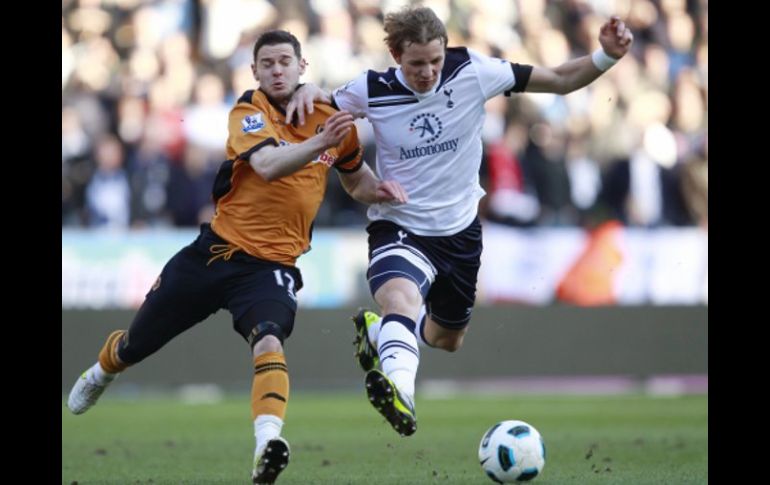 Deportes | El Tottenham no supo hacer valer su condición de favorito y termininó empatado 3-3 Tottenham empata ante Wolverhampton El Tottenham no supo hacer valer su condición de favorito y termininó empatado por tres goles Por: NTX 6 de marzo de 2011 - 13:45 hs Matt Jarvis y Roman Pavlyuchenko (der.) luchan por el dominio del esférico. REUTERS / LONDRES, INGLATERRA (06/MAR/2011).- En lo que era una gran oportunidad para ganar, el Tottenham no supo hacer valer su condición de favorito y terminó por empatar 3-3, contra el Wolverhampton Wanderers. En el Molineux Stadium, los Spurs estaban marcados como favoritos pero se toparon con un equipo motivado como los Wolves, que cada jornada disputan una final para salir de la zona de descenso y mantener la categoría en la liga. El Wolverhampton, vino de atrás para arrebatarle el triunfo al Tottenham, que dejó dos puntos valiosos en su búsqueda por quedar entre los primeros cuatro lugares del certamen y jugar la Liga de Campeones, la siguiente campaña. Kevin Doyle, a los minutos 20 y 40 anotó los dos primeros para los Wolves, mientras que Jermain Defoe hizo lo propio para el Tottenham al 30 y 35, para mandar al descanso con empate 2-2. Al inicio del segundo lapso, el ruso Roman Pavlyuchenko (48), volvió adelantar a la visita que ya cantaba la victoria, pero a tres minutos del silbatazo final el escocés Steven Fletcher, guardó el balón en el fondo de las redes, para el empate 3-3 definitivo. Con la igualada en la fecha 29, el Wolverhampton llegó a igual número de unidades (29), para seguir en el penúltimo lugar de la tabla, sólo por arriba del sotanero Wigan Athletic, sumergido en serios problemas de descenso. El Tottenham llegó a 48 unidades, para situarse en el quinto escalón ya metido en puestos de Liga Europea, pero fuera de Champions, principal objetivo de los Spurs, para esta temporada. Este lunes desde el estadio Bloomfield Road, concluirá la fecha 29 de la Premier, una vez que el Blackpool le haga los honores al campeón actual, Chelsea. Resultados de la fecha 29 de la Liga Premier de Inglaterra Birmingham City 1 - 3 West Bromwich Arsenal 0 - 0 Sunderland Bolton Wanderers 3 - 2 Aston Villa Fulham 3 - 2 Blackburn Rovers Newcastle 1 - 2 Everton West Ham 3 - 0 Stoke City Manchester City 1 - 0 Wigan Athletic Liverpool 3 - 1 Manchester United Wolverhampton 3 - 3 Tottenham Lunes, 7 de marzo de 2011 Blackpool - Chelsea Temas Liga Premier Futbol Internacional Futbol Inglés Tottenham Recibe las últimas noticias en tu e-mail Todo lo que necesitas saber para comenzar tu día Registrarse implica aceptar los Términos y Condiciones