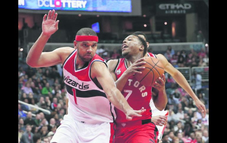 Deportes | NBA. Basquetbol Triple sella triunfo de Raptors Kyle Lowry consiguió 27 puntos liderando el ataque de Toronto, que en su visita a Washington venció 82-84 a los Wizards. Los Raptors sumaron su cuarto triunfo seguido Por: AP 29 de noviembre de 2015 - 00:04 hs WASHINGTON, ESTADOS UNIDOS (29/NOV/2015).- Cory Joseph acertó un triple cuando expiraba el tiempo y los Raptors de Toronto se alzaron ayer con la victoria 84-82 sobre los Wizards de Washington. Kyle Lowry anotó 27 puntos para los Raptors, que previo al triple de Joseph no habían liderado desde el arranque del primer cuarto. Joseph recibió el pase de DeMar DeRozan en la esquina y clavó el enceste ganador. Acabó con 12 puntos en la cuarta victoria en fila de Toronto, pese a que el equipo perdió el balón 22 veces, su mayor cantidad en la campaña. Bradley Beal marcó 20 puntos para Washington. John Wall añadió ocho de sus 18 puntos en el cuarto periodo, pero falló un par de tiros libres en el tramo final. Aunque permitieron la menor cantidad de puntos en la temporada, los Wizards perdieron su cuarto partido seguido. James decide en el último segundo. LeBron James logró embocar un disparo a la carrera cuando un segundo en el reloj para darle a los Cavaliers de Cleveland el triunfo 90-88 sobre los Nets de Brooklyn. Luego que Joe Johnson empató el partido al colar tres tiros libres con 15.2 segundos por jugar, los Cavaliers pidieron tiempo y sacaron el balón a mitad de cancha. James recibió el pase inicial, intentó abrirse pase frente a la pintura y clavó un disparo en gancho sobre Brook Lopez, el centro de los Nets. Diez de los 26 puntos de James fueron en la recta final, además de un robo del balón, para que Cleveland (13-4) siguiera invicto en casa tras nueve partidos. Kevin Love también anotó 26 puntos por Cleveland. Lopez lideró a Brooklyn (4-12) con 22 puntos. Los Nets quedaron con foja de 1-10 fuera de casa. Temas NBA Basquetbol Washington Wizards Raptors Lee También Astros se instalan en la final de zona de la LNBP Astros de Jalisco doblega a Xalapa y se pone a un juego de la Final de Zona Astros de Jalisco toma ventaja sobre Xalapa en la semifinal de zona Iván Déniz confía en la fortaleza colectiva de Astros de Jalisco para Semifinales de Zona Recibe las últimas noticias en tu e-mail Todo lo que necesitas saber para comenzar tu día Registrarse implica aceptar los Términos y Condiciones