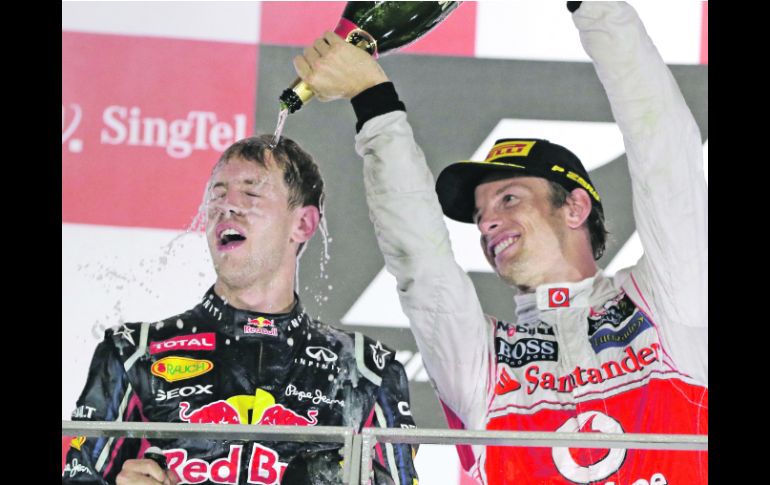 Deportes | Fórmula Uno. Gran Premio de Singapur Triunfo que refresca Sebastian Vettel rompe su sequía de victorias en la categoría, y se mete de lleno a la pelea por el título Por: EL INFORMADOR 24 de septiembre de 2012 - 04:10 hs Baño que sabe a gloria. Jenson Button rocía de champaña a Sebatian Vettel, durante la ceremonia de premiación. AP / CIUDAD DE SINGAPUR, SINGAPUR (24/SEP/2012).- La espectacularidad nocturna de Singapur parecía interminable cuando el Gran Premio disputado en los alrededores del Marina Bay duró exactamente dos horas, a máxima intensidad. Fue una carrera llena de matices, donde Sebastian Vettel (Red Bull) levantó la mano nuevamente por conquistar el tricampeonato, mientras Fernando Alonso (Ferrari) hizo una gran carrera para meterse al podio y mantener su ventaja como líder del mundial. La parrilla de salida era inmejorable para McLaren, equipo que venía de ganar las tres últimas carreras y que colocaba a Lewis Hamilton como el mejor clasificado el pasado sábado. El piloto inglés no tuvo problema para mantener la primera posición en la arrancada y así se conservó, hasta que un desperfecto en la caja de cambios echó a perder un fin de semana que parecía perfecto para el equipo de las “flechas plateadas”. Así, Hamilton abandonaría la contienda nocturna de Singapur justo cuando tenía 1.6 segundos de ventaja sobre su más cercano perseguidor, Sebastian Vettel, en la vuelta 23. De inmediato el alemán de Red Bull tomó la estafeta y se enfiló en una complicada carrera hacia la victoria, a partir del giro 24. La estrategia en la utilización de compuestos para llantas sirvió para que los que culminaron en las primeras cinco posiciones hicieran dos paradas. La mayoría de los autos comenzaron la carrera con gomas superblandas, mientras que de la mitad para abajo dominaron los compuestos blandos, incluyendo el C31 de Sergio “Checo” Pérez (Sauber). Las llantas superblandas mostraron un desgaste muy prematuro, donde hubo pilotos que, a las ocho vueltas (en el caso de Mark Webber), tuvieron que volver a pits pronto, para renovarlas, mientras que Vettel aguantó en una ocasión 23 vueltas este compuesto, yendo al extremo de su utilización, lo que demostró las distintas estrategias que se utilizaron en Red Bull y que fueron más fructíferas para el alemán. Todo transcurría con cierta tranquilidad, hasta que Narain Karthikeyan (HRT) viró en una curva y perdió el control de su auto para impactar la rueda delantera derecha contra el muro de contención. De esta forma, en la vuelta 33 entró por primera vez el Safety Car, que relajó las acciones en Singapur. Cuando la carrera se relanzó, en la vuelta 39, Michael Schumacher entró muy pasado de velocidad en la curva del “Memorial Corner”, donde se impactó por detrás del auto de Jean-Eric Vergne (Toro Rosso), lo que recordó que hace un año, en el mismo sitio, el heptacampeón mundial impactaría de forma similar a Checo Pérez. Con esto, la entrada del Satefy Car fue necesaria y volvería otros tres giros. El reinicio se dio en la vuelta 43, para ya no detenerse hasta el final, completándose 59 vueltas de las 61 pactadas -por tiempo límite de dos horas de carrera- en donde hubo algunos incidentes y roces, pero sin pasar a mayores. POR CIERTOJalón de orejas para “Schumi” El choque de Michael Schumacher contra Jean-Eric Vergne dejó como resultado para el alemán una sanción de los comisarios con 10 posiciones en la parrilla de Suzuka, lo que suma su séptimo castigo en la temporada y el segundo castigo de este tipo, tras impactarse contra Bruno Senna en el GP de España. LO QUE SIGUE La próxima cita de la Fórmula Uno será en el Gran Premio de Japón, el 7 de octubre, en la pista de Suzuka, un circuito que será más entretenido que lo que se vivió en el trazdo de Singapur. RESULTADO DE LA CARRERA:Posición/ Piloto/ Equipo/ Tiempo 1.- Sebastian Vettel Red Bull/ 2:00.26.144 horas 2.- Jenson Button McLaren/ +8.9 segundos 3.- Fernando Alonso Ferrari/ +15.2 segundos 4.- Paul Di Resta Force India/ +19.0 segundos 5.- Nico Rosberg Mercedes/ +34.7 segundos 6.- Kimi Raikkonen Lotus/ +35.7 segundos 7.- Romain Grosjean Lotus/ +36.6 segundos 8.- Felipe Massa Ferrari/ +42.8 segundos 9.- Daniel Ricciardo Toro Rosso/ +45.8 segundos 10.- Sergio Pérez Sauber/ +50.6 segundos 11.- Mark Webber Red Bull/ +67.1 segundos (sancionado con 20 segundos) 12.- Timo Glock Marussia/ +91.9 segundos 13.- Kamui Kobayashi Sauber/ +97.1 segundos 14.- Nico Hulkenberg Force India/ +99.4 segundos 15.- Heikki Kovalainen Caterham/ +107.9 segundos 16.- Charles Pic Marussia/ +132.9 segundos 17.- Pedro de la Rosa HRT/ +1 vuelta 18.- Bruno Senna Williams/ +2 vueltas 19.- Vitaly Petrov Caterham/ +2 vueltas 20.- Jean-Eric Vergne Toro Rosso/ Retirado por accidente 21.- Michael Schumacher Mercedes/ Retirado por accidente 22.- Pastor Maldonado Williams/ Retirado por problema hidráulico 23.- Narain Karthikeyan HRT/ Retirado por accidente 24.- Lewis Hamilton McLaren/ Retirado por problema en la caja de cambios ESTADO DEL CAMPEONATO TOP-TEN:Posición/ Piloto Equipo/ Puntos 1.- Fernando Alonso Ferrari/ 194 2.- Sebastian Vettel Red Bull/ 165 3.- Kimi Raikkonen Lotus/ 149 4.- Lewis Hamilton McLaren/ 142 5.- Mark Webber Red Bull/ 132 6.- Jenson Button McLaren/ 119 7.- Nico Rosberg Mercedes/ 93 8.- Romain Grosjean Lotus/ 82 9.- Sergio Pérez Sauber/ 66 10.- Felipe Massa Ferrari/ 51 CAMPEONATO DE CONSTRUCTORES:Posición/ Equipo Puntos 1.- Red Bull 297 2.- McLaren 261 3.- Ferrari 245 4.- Lotus 231 5.- Mercedes 136 6.- Sauber 101 7.- Force India 75 8.- Williams 54 9.- Toro Rosso 14 10.- Marussia 0 11.- Caterham 0 12.- HRT 0 Temas Automovilismo Fórmula 1 Sebastian Vettel Gran Premio de Singapur Lee También Premio Nobel de la Paz es para María Corina Machado, líder opositora de Venezuela Julieta Fierro será homenajeada en la FIL Portada: Dr. José Magaña, embajador de Arkana México László Krasznahorkai: Libros para adentr