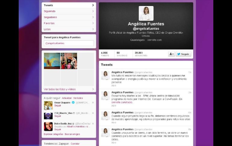 Deportes | Mensaje de la directora de Omnilife, hace que se hable sobre una posible venta Tuit de Angélica Fuentes, reaviva rumores en Chivas Mensaje de la directora de Omnilife, hace que se hable sobre una posible venta del equipo Por: EL INFORMADOR 14 de mayo de 2013 - 11:34 hs Fuentes despierta polémica luego de sus palabras en internet. ESPECIAL / GUADALAJARA, JALISCO (14/MAY/2013).- Desde hace unas semanas, ha circulado en redes sociales y algunos medios, un rumor sobre una posible venta del Club Deportivo Guadalajara, al empresario Carlos Slim. Aunque Jorge Vergara y el mismo Slim, han desmentido en varias ocasiones este hecho, el día de hoy un par de tuits de Angélica Fuentes, CEO de Grupo Omnilife-Chivas, en el que menciona un fin de ciclo, reavivó esta versión en twitter. "Cuando una puerta se cierra, o un ciclo termina, se abre un nuevo comienzo para nosotros en un nivel superior. No temas terminar los ciclos." (sic) "Cuando algun proyecto llega a su fin, debemos sentirnos orgullosos de nuestro aprendizaje, xq estamos preparados para retos mas altos"(sic) Estas publicaciones despertaron las reacciones de los aficionados del Guadalajara. “Pues ojalá que el ciclo de usted y Vergara en Chivas por fin termine. La afición Chiva es lo que más desea”, dijo @rafachivas1. Carlo Legorreta, escribió: "@angelicafuentes El prestigio de las chivas esta por los suelos urge una limpia, para q vuelva ser el equipo GRANDE, y disfrutar de su juego" "Lo escrito en twitter por Angélica Fuentes se referirá a Chivas? Lo dudo, no creo que alguien le "atore" con 800 mill. que piden por Chivas" publicó el usuario @CarlosCalderonC Unas horas más tarde, Fuentes mandó otro mensaje, probablemente, tratando de aclarar la situación: "Mis tuits no encierran mensajes ocultos; los dedico a quienes me acompañan con energia positiva, para mover a la reflexion y crecimiento personal" Hasta este momento, estas publicaciones de la directora del grupo Omnilife, tiene más de 50 retuits, la mayoría de ellos de aficionados de Chivas. EL INFORMADOR/ PATRICIA GALLARDO Temas Chivas Twitter Redes Sociales Angélica Fuentes Lee También Chivas Femenil, a una victoria de asegurar su lugar en Liguilla Bad Bunny permanece sentado durante "God Bless America" y enciende las redes Alcalde de Tulum anuncia acceso libre a playas, pero sin alimentos ni bebidas Abogado de presunta víctima espera vinculación a proceso de Omar "N" Recibe las últimas noticias en tu e-mail Todo lo que necesitas saber para comenzar tu día Registrarse implica aceptar los Términos y Condiciones