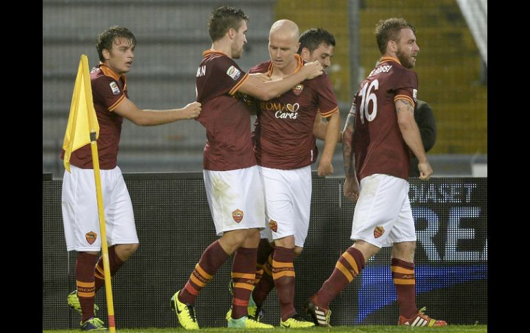 Deportes | El equipo de la capital italiana derrota por la mínima al Udinese Una Roma de récord sigue sumando de tres en tres El equipo de la capital italiana derrota por la mínima al Udinese en calidad de visitante Por: EFE 27 de octubre de 2013 - 13:03 hs El cuadro romano continúa imbatible en la Serie A. EFE / ROMA, ITALIA (27/OCT/2013).- Roma reforzó su liderato de la Seria A italiana (Primera división) con una victoria en el minuto 82 en su visita al Udinese (0-1), lo que representa su noveno triunfo consecutivo y, con ello, igualar el récord en poder del Juventus Turín dirigido por Fabio Capello de la campaña 2005-06. La novena victoria romanista, en igual número de jornadas disputadas, llegó además con el equipo en diez, ante la expulsión apenas dieciséis minutos antes del defensa brasileño Maicón. Pero el centrocampista estadounidense Michael Bradley, tras cesión de Strootman, puso el 0-1 y resolvió en favor del Roma un partido que se le puso muy complicado y donde el Udinese se mereció llegar al descanso con ventaja en el marcador. No en vano, además de un par de buenas ocasiones a cargo de Di Natale, un remate de Muriel terminó con el balón estrellándose en un palo de la meta romanista y, en otra oportunidad, un balón de Gabriel Silva fue sacado prácticamente desde la línea de meta por Castan. Luego, el mejor saber romanista decidió en la segunda mitad y el equipo dirigido por el francés Rudi García se llevó un triunfo que le mantiene en el liderato con cinco puntos de ventaja sobre el Nápoles y el Juventus Turín. El Nápoles del técnico español Rafa Benítez se resarció ante el Torino (2-0) de la amarga derrota de la semana pasada contra el líder Roma y cogió impulso con una victoria gracias a los dos tantos (ambos de penalti) del delantero argentino Gonzalo Higuaín. Un partido dominado por el Nápoles y en la que el portero español Pepe Reina estuvo como espectador dadas las pocas llegadas del "Toro". Higuaín (m.68), que había estado las semanas anteriores con problemas musculares, fue sustituido por el español Callejón recibiendo la ovación del estadio napolitano de San Paolo. Juventus, tras la derrota en su visita al Real Madrid en la Liga de Campeones de Europa, y con el español Fernando Llorente de nuevo como titular, derrotó en casa al Génova (2-0) con goles del chileno Arturo Vidal (23 penalti) y del delantero argentino Carlos Tévez (m.36). La sorpresa, en el lado negativo, la dio el Milán, rival del Barcelona en la Liga de Campeones de Europa y que cayó en su visita al Parma (3-2). Tras igualar un local 2-0 al termino de la primera mitad, con los tantos del defensa argentino Matías Silvestre y del delantero italiano Alessandro Matri, el conjunto milanista cayó en el minuto 94, en tanto de Parolo. El Milán se va a dieciséis puntos del líder Roma. Fiorentina logró escalar hasta la quinta posición gracias a dos goles del centrocampista colombiano Juan Cuadrado que rompió la meta del colista Chievo (1-2). El Bolonia, que no había vencido en ninguna de las ocho jornadas precedentes, rompió su negativa racha frente a un Livorno (1-0) que sufrió el tanto del defensa español José Ángel Crespo (m.3) que regaló a su equipo tres puntos de oro que sacaron al conjunto del último puesto de la clasificación, a pesar de que continua en zona de descenso. En partidos adelantados al sábado, el Inter de Milán se impuso al Verona (4-2), con un autogol de Moras y tantos de los argentinos Rodrigo Palacio y Esteban Cambiasso y del portugués Rolando, por los interistas, y de los visitantes de los centrocampistas brasileños Raphael Martinho y Rómulo. También el sábado, el Sampdoria derrotó al Atalanta (1-0), con gol de Mustafi (m.56). Temas Futbol Internacional Serie A AS Roma Recibe las últimas noticias en tu e-mail Todo lo que necesitas saber para comenzar tu día Registrarse implica aceptar los Términos y Condiciones