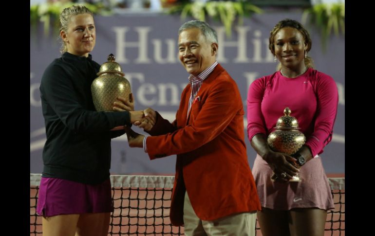 Deportes | Ambas jugadoras utilizan el torneo como fogueo para el Abierto de Australia Victoria Azarenka vence a Serena Williams en exhibición Ambas jugadoras utilizan el torneo como fogueo para el Abierto de Australia Por: AP 28 de diciembre de 2013 - 09:18 hs Victoria Azarenka (i) derrota a Serena Williams en una exhibición en Hua Hin, Tailandia. AFP / HUA HIN, TAILANDIA (28/DIC/2013).- Victoria Azarenka derrotó el sábado a Serena Williams en una exhibición entre las dos primeras raquetas de la WTA. Azarenka, segunda del ranking mundial detrás de Williams, se impuso 7-5, 6-3 en la exhibición en Hua Hin, Tailandia. Ambas jugadoras utilizaron el torneo como fogueo para el Abierto de Australia. Williams derrotó a Azarenka en la final del Abierto de Estados Unidos este año. "Fue un buen fogueo antes de Australia. Victoria es una jugadora más fuerte, siempre es divertido enfrentar a alguien como ella", comentó la estadounidense. Temas Tenis Torneo WTA Serena Williams Victoria Azarenka Torneos de tenis Lee También No solo Puma, estas son las colecciones de tenis para Día de Muertos 2025 (FOTOS) Calendario de partidos de la J13 del Apertura 2025 El tenis ahora es de los deportes favoritos en Guadalajara ¿Dónde ver EN VIVO el partido de J12 Xolos vs Monterrey? Recibe las últimas noticias en tu e-mail Todo lo que necesitas saber para comenzar tu día Registrarse implica aceptar los Términos y Condiciones