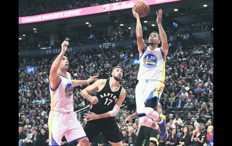 TORONTO, CANADÁ (17/NOV/2016).- Un segundo cuarto en el que explotó la ofensiva, le bastó a los Warriors de Golden State para imponerse anoche ante los Raptors de Toronto por marcador de 127-121, lo que extiende la racha del equipo californiano a cinco victorias consecutivas sobre la quinteta canadiense.De la mano de Stephen Curry que tuvo una noche de 35 puntos, siete asistencias y tres rebotes, más los 30 puntos, seis asistencias y nueve rebotes aportados por Kevin Durant, los campeones reinantes de la Conferencia Oeste llegaron a nueve victorias en la temporada contra dos derrotas, aún manteniéndose en el segundo sitio de la División Pacífico, sin importar el resultado de los Clippers de Los Ángeles ante los Grizzlies de Memphis.Por su parte, por los Raptors, DeMar DeRozan aportó 34 puntos, cuatro asistencias y seis rebotes, para convertirse en el primer jugador de la NBA en anotar 30 puntos o más en nueve de sus primeros 11 juegos de la campaña desde que Michael Jordan lo hiciera en la temporada 1987-1988.La gran noche de DeRozan no pudo evitar que el equipo de los Raptors sufriera su cuarto descalabro de la campaña, tercero en casa, pero manteniendo el liderato de la División Atlántico de la Conferencia Este, apenas con un juego de ventaja sobre los Celtics de Boston, que ayer derrotaron 90-83 a los Mavericks de Dallas.Con esta derrota ante Golden State, Toronto suma cinco descalabros consecutivos ante los Warriors. La última ocasión que los Raptors se impusieron a los californianos se dio el 2 de marzo de 2014, jugando en casa y por marcador de 104-98, con DeMar DeRozan aportando 32 puntos.Cavaliers suman segunda derrotaSin LeBron James en la duela por parte de los Cavaliers de Cleveland, los Pacers de Indiana aprovecharon y con un Paul George aportando 21 puntos se llevaron la victoria por marcador de 103-93 y propinarle la segunda derrota de la temporada al campeón reinante de la NBA.Los Cavaliers, que se mantienen líderes en la misma División en la que juegan los Pacers, fueron conducidos por el alero Kevin Love, con 27 puntos y 16 rebotes, además del aporte de 24 puntos de Kyrie Irving, siendo los únicos jugadores de Cleveland en tener noche de doble dígito en puntos.