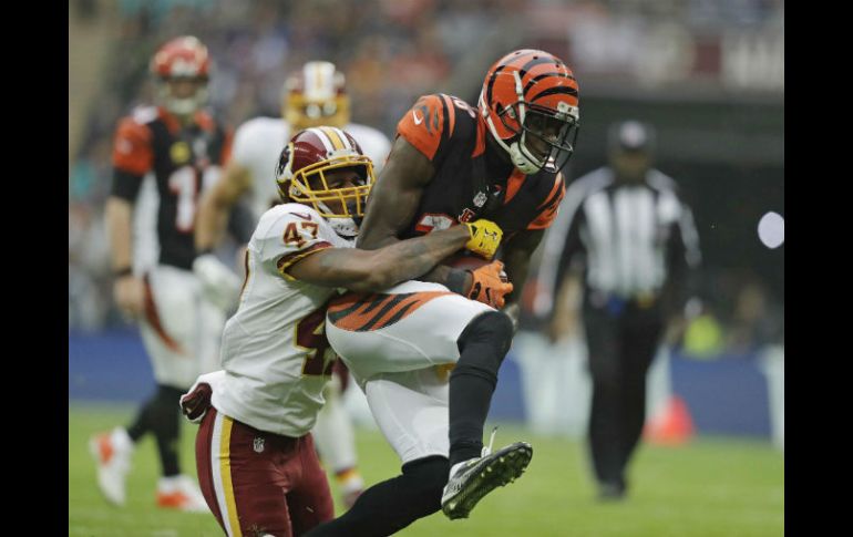 LONDRES, INGLATERRA (30/OCT/2016).- Por segunda semana consecutiva, la Liga Nacional de Futbol Americano (NFL) vio decretarse un empate, cuando Pieles Rojas de Washington (4-3-1) y Bengalíes de Cincinnati (3-4-1) firmaron un 27-27 en duelo por la octava semana de acción, disputado en el Wembley Stadium de esta ciudad. Washington, que fungió como local administrativo, tuvo dominio del juego y llegó a las diagonales con acarreo de cuatro yardas del novato Rob Kelly, más dos pases de Kirk Cousins, de 23 yardas con el ala cerrada Jordan Reed y el receptor Jamison Crowder, más dos goles de campo de Dustin Hopkins. Para Cincinnati, Giovanni Bernard anotó con acarreo de ocho, Andy Dalton puso dos más, con pase de 15 para el ala cerrada Tyler Eifert y con personal de una yarda, aunque fallaron el extra en el primero, y el corredor Jeremy Hill cerró la cuenta con carrera también de una. El duelo inició muy equilibrado, con Washington inaugurando el marcador en Wembley con el acarreo anotador de cuatro yardas de Kelly en la primera serie del partido, al que Cincinnati respondió de inmediato con carrera de ocho yd de Bernard, que igualó los cartones en 7-7. Las ofensivas perdieron su intensidad en el segundo episodio e incluso comenzaron a cometer errores que ocasionaron que el tanteador se moviera sólo tres puntos, con gol de campo de último segundo de Hopkins que dejó a la "tribu" con ventaja 10-7 al medio tiempo. En la segunda mitad, el marcador se convirtió en una auténtica montaña rusa, en la que los "felinos" fueron los primeros en sacar una ventaja que parecía sólida con par de touchdowns en el tercer episodio, cortesía de un Andy Dalton, quien por fin llegó a Wembley. Primero, el estelar pasador encontró completamente solo a Eifert con pase milimétrico de 15 yardas en la "zona prometida", aunque fallaron el punto extra, y luego, él mismo anotó con personal de una yarda que taladró el centro de la línea de scrimmage y los dejó adelante 20-10. No obstante, Pieles Rojas recuperó la ventaja con par de envíos a las diagonales de Cousins, el primero todavía en el tercer episodio, de 23 yd con Reed y el segundo de 33 con Crowder, que, además, fue el touchdown número 100 en la Serie Internacional de la NFL. Sin arredrarse, todavía con 9:30 minutos en el reloj, Dalton tomó el balón y lideró una ofensiva que los llevó a la zona de anotación en seis jugadas y 2:36 minutos, la cual culminó con la corrida de una yarda de Hill, que los puso adelante 27-24. Luego de recuperar un balón suelto, Cincinnati parecía encaminado a la victoria, sin embargo la defensa de Washington apretó y le dio a Cousins una última oportunidad para sacar el juego y aunque sólo consiguió dejar a Hopkins a distancia para conectar un gol de campo de 40 yd, eso fue suficiente para enviar el duelo a tiempo extra. Ya en el alargue, la "tribu" tuvo incluso otra oportunidad de llevarse la victoria de suelo londinense, pero Hopkins, se manera increíble falló un intento de gol de campo de 34 yd, en tanto los "felinos" ni siquiera pudieron acercarse a la zona roja. Así, se decretó el segundo empate en semanas consecutivas en la temporada 2016 de la NFL, luego que Halcones Marinos de Seattle y Cardenales de Arizona igualaron 6-6 en la jornada dominical de la séptima semana. Por Pieles Rojas, Kirk Cousins concretó 38 de 56 intentos de pase, con 458 yardas de ganancia, dos touchdowns y una intercepción, en tanto para Bengalíes, Andy Dalton completó 27 de 42, para aportar 284 yd, un touchdown y un interceptado.