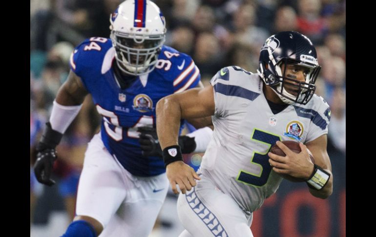 Deportes | Seattle se acerca más a un puesto en los playoffs Wilson brilla en triunfo de los Halcones Marinos Seattle se acerca más a un puesto en los playoffs Por: AP 16 de diciembre de 2012 - 18:34 hs El novato anotó tres touchdowns en acarreos e hizo pase para otro. AP / TORONTO, CANADÁ (16/DIC/2012).- El quarterback novato Russell Wilson anotó tres touchdowns en acarreos e hizo un pase para otro, llevando a los Halcones Marinos de Seattle a una victoria de 50-17 sobre los Bills de Buffalo, en el partido anual de éstos últimos en Toronto. Wilson anotó en carreras de 14, 25 y cuatro yardas y entonces conectó con el ala cerrada Zach Miller con un pase de cuatro yardas para otra anotación. La defensa contribuyó forzando tres pérdidas de balón consecutivas para abrir la segunda mitad, incluyendo una intercepción que Earl Thomas regresó 57 yardas para touchdown. Una semana después de apalear en casa 58-0 a Arizona, los Halcones Marinos (9-5) se acercaron más a un puesto en los playoffs. Los Bills (5-9) quedaron eliminados de la contienda por 13 año consecutivo. Temas NFL Futbol Americano Bills de Buffalo Halcones Marinos de Seattle Lee También Futbol hoy 10 de octubre de 2025: ¿Dónde ver los partidos en vivo? México listo para un nuevo desafío en el Mundial Sub-17 Femenil Todas las selecciones que han calificado al Mundial 2026 hasta hoy Chivas y América calientan en redes el Clásico Nacional de la Fecha FIFA Recibe las últimas noticias en tu e-mail Todo lo que necesitas saber para comenzar tu día Registrarse implica aceptar los Términos y Condiciones