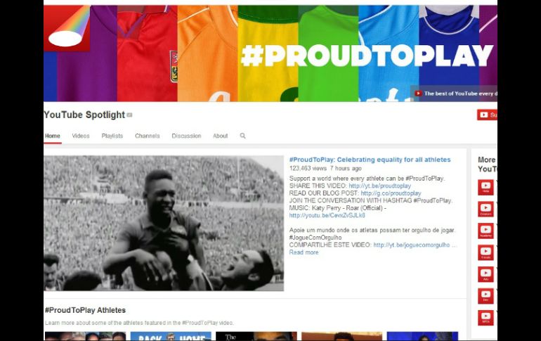Deportes | Con el 'hashtag' #ProudToPlay invitan a los usuarios a unirse al movimiento YouTube apoya a atletas homosexuales Con el 'hashtag' #ProudToPlay invitan a los usuarios a unirse al movimiento Por: EL INFORMADOR 3 de junio de 2014 - 08:32 hs GUADALAJARA, JALISCO (03/JUN/2014).- Con el objetivo de promover la igualdad y la no discriminación, este martes la red mundial de videos, YouTube, lanzó una campaña titulada #ProudToPlay (orgulloso de jugar) en la que une a diversos deportistas que se han declarado abiertamente como homosexuales. El clip inicia con la frase del fallecido ex presidente sudafricano Nelson Mandela, en el que menciona que ''el deporte tiene el poder de cambiar al mundo. De unir a la gente de una manera en que pocas cosas lo pueden lograr". Mientras continúa el fondo de la canción ''Roar'' de Katy Perry, que se ha convertido en un himno para la comunidad. Youtube cambió su logotipo y ahora se puede encontrar una pequeña cancha de futbol y un balón que, al momento de presionarlo, envían al usuario a un video de dos minutos en el que deportistas como el clavadista Tom Daley, el basquetbolista Jason Collins y el futbolista Michael Sam expresan su apoyo y alientan a los deportistas a expresar su sexualidad abiertamente. Dicho video tiene más de 89 mil reproducciones con apenas unas horas de haber sido publicado. Además, existe una lista de reproducción específica con momentos destacados de los atletas ya mencionados. Además de otros como el delantero brasileño Neymar, que también muestran su apoyo. #ProudToPlay es lanzado a sólo nueve días de que de inicio el mundial de Brasil 2014. EL INFORMADOR/ PATRICIA GALLARDO Temas Futbol Internacional Basquetbol Clavados YouTube Homosexualidad Redes Sociales Lee También ¿Dónde ver EN VIVO el partido amistoso México vs Colombia? Dónde ver EN VIVO el México vs Argentina por el Mundial Sub-20 La actualidad de Diego Ochoa, formado en Chivas y destacado en el Mundial Sub-20 José Jerí asume como presidente de Perú Recibe las últimas noticias en tu e-mail Todo lo que necesitas saber para comenzar tu día Registrarse implica aceptar los Términos y Condiciones