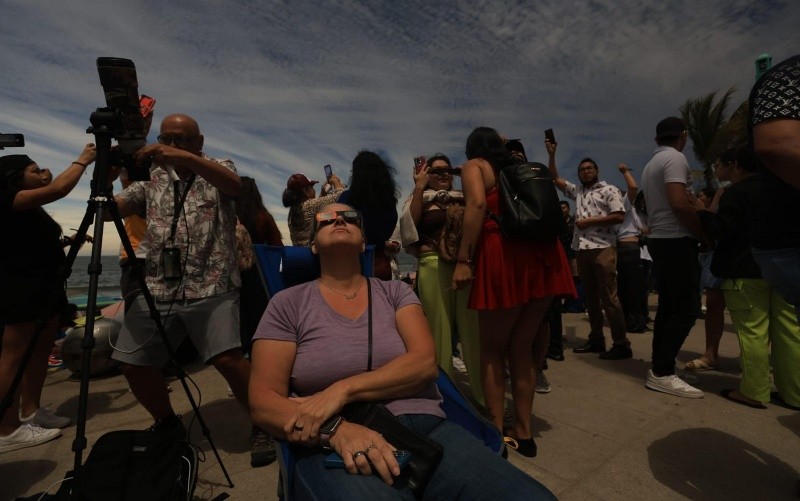 La momentánea comunión entre el Sol y la Luna emocionó a los tapatíos que acudieron ayer a distintos puntos de la Zona Metropolitana de Guadalajara (ZMG) para observar el eclipse sin arriesgar su salud. Grandes y chicos miraron hacia arriba con lentes especiales; otros clavaron el ojo en la mira de los telescopios, aunque sea por unos segundos; también hubo quienes se conmovieron con las suaves sombras menguantes que se proyectaron en el suelo, tamizadas por las copas de los árboles. Eduardo Noriega, su hija y su nieto fueron al Planetario Lunaria. Para él fue significativo hacerlo, pues también presenció el fenómeno de 1991. “Le comentaba a mi hija que es algo raro, pues creo que no llegaré al siguiente eclipse, que es en muchos años”, dijo luego de deleitar su vista. Damián, su nieto, compartió su experiencia, que también lo sorprendió: “Se vio una Luna bien flaquita”. Denisse destacó el evento astronómico como algo irrepetible en su vida. “Sé que no veré el próximo, por eso es muy impresionante estar aquí”. Los alumnos de la primaria “Idolina Gaona de Cosío”, ubicada en la zona de La Normal, vieron el eclipse a través del sitio de internet de la NASA y con el apoyo de sus profesores prepararon dibujos y maquetas para entender el fenómeno. “Hubo una actividad para que vieran cómo se mueve la Luna. Salimos con un cristal de soldador y también observamos las sombras en las hojas de los árboles”, comentó Karla Delgado, maestra de sexto grado. En la Plaza de la Liberación, en el primer cuadro tapatío, se generaron filas para aprovechar los telescopios en renta. Los propietarios de los aparatos cobraron a los turistas y paseantes hasta 40 pesos por apenas un minuto de observación. El espectáculo, que comenzó en el Océano Pacífico, oscureció al puerto de Mazatlán, en Sinaloa. Usuarios de las redes sociales oriundos de ese destino turístico compartieron que incluso las luces de sus casas se prendieron automáticamente al dejar de detectar los rayos solares. Aldo Rodríguez Puebla, investigador del Instituto de Astronomía de la Universidad Nacional Autónoma de México (UNAM), explicó que los eclipses son eventos astronómicos “raros” que pueden presentarse cada 18 años, aproximadamente, pero para que ocurran en un mismo lugar geográfico muchas veces pasan décadas e, incluso, una persona podría ver uno sólo una vez en su vida.El eclipse, al menos parcial, pudieron verlo cientos de millones de personas en México, Estados Unidos, y Canadá, pero sólo 42.8 millones tuvieron la oportunidad de observarlo en su totalidad.Se espera que el siguiente en México ocurra el 30 de marzo de 2052.En el este de Dallas, cientos se reunieron en el Mesquite, zona especial de observación, en donde aplaudieron y silbaron mientras las nubes se abrían pocos minutos antes de que el eclipse alcanzara su fase de totalidad. A medida que el Sol finalmente quedaba cubierto, la ovación se hizo más fuerte, y los presentes se retiraron sus gafas protectoras para presenciar la vista inolvidable de la corona del Sol, y a Venus resplandeciente a la derecha.Luego de 33 años del último eclipse solar, el fenómeno astronómico volvió a suceder ayer y la reacción de los mexicanos en los distintos Estados dejó en claro que no decepcionó.El acontecimiento fue uno de los momentos más esperados de este 2024, pues atrajo a decenas de espectadores que deseaban verlo con sus propios ojos, pues no podrán presenciar otro igual hasta dentro de 28 años, es decir, en el año 2052, de acuerdo con el calendario de la NASA.Con lentes, instrumentos caseros para ver y filtros solares para sus cámaras, niños, jóvenes y adultos a lo largo de todo el país se prepararon desde temprano para presenciar el evento, en algunos lugares acudieron a las sedes habilitadas para poder observarlo.Si algo coincidió en la mayoría de los observadores, fue el sentimiento que les generó poder compartir este suceso con sus familiares, hijos y seres queridos.En Pachuca, Hidalgo, Adriana Gálvez quien tuvo la oportunidad de presenciar ambos eclipses, el de 1991 y el de este 2024, dijo que, a diferencia de 1991 donde no había mayores conocimientos sobre estos hechos, y por lo que muchas personas estuvieron encerradas en sus domicilios, ahora se pudo disfrutar en familia.Alejandro Ponce Frickman, presidente de la Sociedad Astronómica de Chiapas, dijo que “la participación de los niños y los jóvenes en esas actividades despierta y fortalece la inquietud científica”. SUNSe presentó un eclipse solar que pudo ser visto en la Ciudad de México; el anterior fue el 11 de julio de 1991, y entre ambos hay diferencias políticas, sociales y culturales en la capital del país.El 11 de julio de 1991, el eclipse solar fue total en el entonces Distrito Federal, y se oscureció gran parte del territorio. Ahora, en el 2024, ya con el nombre de Ciudad de México se percibió en un 75% en su punto máximo y debió verse con lentes especiales.En 1991, el Gobierno del entonces Distrito Federal anunció un paro a partir de las 12:10 a las 14:00 horas; este 2024, las autoridades de la Ciudad de México no anunciaron una medida como tal.En ese año, hubo 20 mil policías que recorrían las calles y el alumbrado se encendió automáticamente.Para el 2024, no hubo operativo especial, pero miles de capitalinos se reunieron en diversos lugares para observarlo como las Islas de Ciudad Universitaria, planetarios, el Zócalo capitalino y calles cercanas a Paseo de la Reforma.SUNMAZATLÁN, SINALOAEn Mazatlán, principal punto de concentración de astrónomos de todo el mundo e investigadores de la NASA, se distribuyeron desde la madrugada de ayer, en diez puntos del malecón, sesenta mil lentes especiales para observar el eclipse total de sol.Por lo que el 8 de abril de 2024 se ha convertido en un referente tras marcar un hito en la historia astronómica de México, luego de que el puerto fuera el prota