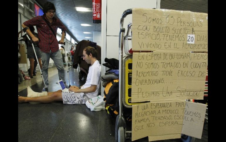Economía | La urgencia de los connacionales por regresar al país cada vez es mayor Aeroméxico mantiene varados a unos 50 mexicanos en Madrid La aerolínea no se da abasto para atender a pasajeros que cuentan con boletos sujetos a disponibilidad de espacio y la lista de espera crece Por: EL INFORMADOR 11 de agosto de 2010 - 09:13 hs Los pasajeros varados cuelgan carteles de protesta en los pasillos del aeropuerto de Madrid. EFE / MADRID, ESPAÑA (11/AGO/2010).- Un grupo de al menos 50 mexicanos está varado en el aeropuerto de Madrid-Barajas a la espera de que haya plazas libres para poder volar a la ciudad de México. Según la agencia Efe, los viajeros tienen boletos sujetos a disponibilidad de espacio de la aerolínea Aeroméxico, pero llevan casi tres semanas en espera porque los aviones iban llenos. El reporte señala que la problemática es constante en la Terminal 1 (T-1) del aeropuerto madrileño, que cada año acoge el "campamento" de pasajeros, la mayoría de ellos mexicanos, que viajan con billetes gratuitos que los empleados de la compañía mexicana regalan a familiares y amigos. Fuentes de Aeroméxico explicaron a la agencia española que había sobreventa de boletos en los vuelos hasta el pasado 7 de agosto, y detallaron que, desde entonces, la situación mejoró "un poco y cada día quedan unas dos o tres plazas libres", en las que se va dando salida a estos viajeros afectados. Pese a todo, las fuentes advirtieron de que la salida de los viajeros se producirá "con cuentagotas", porque "cada día llegan al aeropuerto nuevos viajeros en una cifra superior a la que puede ir saliendo", con lo que prevén que la situación no se normalizará hasta fin de mes. Ante las pancartas que los afectados han colocado en la T-1 para denunciar su situación y los carros con equipajes y comida, el español Borja Castillo reconoció que tiene un "billete sujeto a espacio", que compró a un empleado de la empresa, ya que su situación económica no le permitía comprar un pasaje a "un precio normal". Castillo manifestó que le advirtieron de que el viaje podía demorarse hasta dos días, "pero no los diez que llevo en el aeropuerto. Si sé esto, jamás lo habría comprado". Por su parte, la mexicana Patricia Cruz explicó que la lista de espera se inició hace 21 días, y en ella están inscritos una media de "entre 30 y 40 personas diariamente", de las que algunas optan por comprar billetes con otras compañías. Cruz manifestó que muchos de los que adquirieron estos billetes desconocían la situación que podían afrontar en el aeropuerto, y reveló que han recibido la visita de personal de la Embajada de México, que les había ofrecido ayuda económica para adquirir alimentos con los que pasar los días. "La mayoría somos estudiantes y muchos terminábamos las vacaciones, con lo que nos hemos gastado todo el dinero. Hubo una persona que sólo tenía un euro", agregó Cruz. Temas Empresas Aerolíneas Aeroméxico Lee También Sociales: Nice de México celebra su 29 aniversario Adiós a il Piacere Tlajomulco apoyará a comerciantes afectados por inundaciones en Adolf B. Horn Recibe las últimas noticias en tu e-mail Todo lo que necesitas saber para comenzar tu día Registrarse implica aceptar los Términos y Condiciones