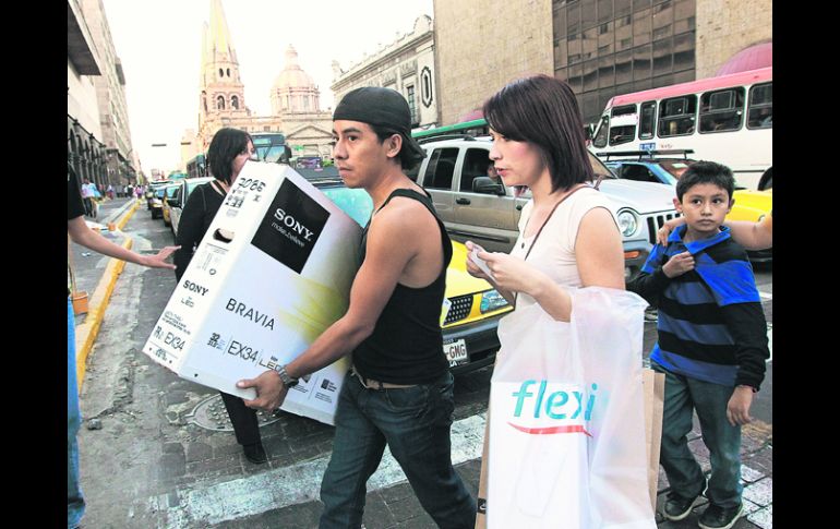 Economía | Los aparatos electrónicos fueron los artículos preferidos por los compradores. Familias aprovecharon las ofertas del Buen Fin Productos electrónicos y equipo de cómputo entre las principales adquisiciones de los compradores en el Buen Fin 2012 Por: EL INFORMADOR 18 de noviembre de 2012 - 03:05 hs Atraídos por el programa de ofertas y descuentos, miles de tapatíos acudieron al Centro a lo largo de la jornada. / GUADALAJARA, JALISCO (18/NOV/2012).- Los 20 centros comerciales de la Zona Metropolitana que participan en el Buen Fin fueron abarrotados por familias, que acudieron a los establecimientos por las ofertas del segundo día del programa. David Ávila Flores, director de Soporte y Servicio al Afiliado de la Cámara de Comercio de Guadalajara, refirió: “El Centro de Análisis Estratégico Empresarial aún está recabando, procesando y analizando datos, pero en términos preliminares, reportan mucha afluencia e incrementos en las ventas”. Las familias compraron, básicamente, aparatos de cómputo y electrónica, seguido de ropa, línea blanca, calzado y bisutería. El comerciante Esteban Jiménez dijo que hubo muchos clientes: “Sí, se ha notado que más personas vienen al Centro, hay movimiento y eso es bueno para la temporada. La gente se lleva un suéter, una chamarra, una blusa, sí compran”. En el Buen Fin de 2011 se registraron 493 millones de pesos extra al consumo normal de un fin de semana, que es de mil 657 millones de pesos. La Cámara de Comercio prevé que esta edición supere los 560 millones de pesos planteados desde un inicio como estimación. Temas Economía local El Buen Fin Lee También Inflación en México se acelera en septiembre; liga dos meses al alza La creación de empleo va en caída este año Presentan Plan México ante empresarios del Foro Mundial Arranca la Expo Ganadera con 70 años de tradición Recibe las últimas noticias en tu e-mail Todo lo que necesitas saber para comenzar tu día Registrarse implica aceptar los Términos y Condiciones