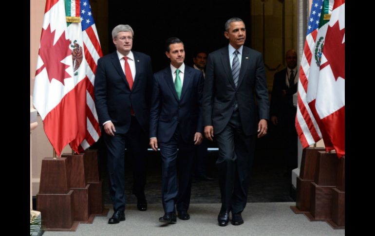 Economía | Indica que la prosperidad se alcanzará mediante la cooperación trilateral Harper reconoce logros en administración de Peña Indica que la prosperidad se alcanzará mediante la cooperación con México y Estados Unidos Por: SUN 19 de febrero de 2014 - 18:20 hs Stephen Harper (i), Enrique Peña Nieto (c) y Barack Obama (d) durante la Cumbre de Líderes de América del Norte. AP / TOLUCA, ESTADO DE MÉXICO (19/FEB/2014).- El primer ministro de Canadá, Stephen Harper, reconoció los cambios que se han implementado en México durante la administración del presidente Enrique Peña Nieto y que marcan una transformación a 20 años del Tratado de Libre Comercio para América del Norte ( TLCAN). Previo a que los mandatarios de México, EU y Canadá realizarán una reunión en torno a la Cumbre de Líderes de América del Norte, Harper destacó que la integración económica en un tratado de libre comercio es vital para los intereses de los tres países que se reúnen en Toluca. "Empresarios y académicos tenemos oportunidad de ver cómo acercar la economía de los tres países para hacerla prosperar en una alianza comercial", dijo. Reiteró que el futuro económico de América del Norte está vinculado a las tres regiones y "por eso debemos seguir trabajando de manera conjunta". Harper reconoció que la prosperidad se alcanzaría mediante la cooperación trilateral e indicó que en los tratado económico y también bilaterales, Estados Unidos forma gran parte de esos logros. "Tenemos que seguir trabajando en superar los obstáculos parroquianos de nuestros países", dijo el primer ministro. Temas TLCAN Economía Internacional Enrique Peña Nieto Barack Obama Stephen Harper Lee También Futbol hoy 10 de octubre de 2025: ¿Dónde ver los partidos en vivo? Hamás dice que recibió garantías de que la guerra en Gaza terminó Todas las selecciones que han calificado al Mundial 2026 hasta hoy Esta es la última guerra que Trump resolvió, según él mismo Recibe las últimas noticias en tu e-mail Todo lo que necesitas saber para comenzar tu día Registrarse implica aceptar los Términos y Condiciones