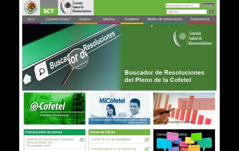 Economía | Buscan transparentar el trabajo y brindar mejor atención a la ciudadanía La Cofetel lanza buscador de resoluciones El secretario técnico, Juan José Crispin Borbolla espera que este sitio sea una herramienta útil para las personas Por: NTX 29 de noviembre de 2012 - 13:04 hs El Buscador de Resoluciones del Pleno permitirá consultar los archivos existentes de 2010 a la fecha. ESPECIAL / CIUDAD DE MÉXICO (29/NOV/2012).- Con el objetivo de transparentar el trabajo de la Comisión Federal de Telecomunicaciones (Cofetel) y brindar mejor atención a la ciudadanía, el organismo regulador presentó este jueves el Buscador de Resoluciones del Pleno, el cual permitirá consultar los archivos existentes de 2010 a la fecha. El secretario técnico, Juan José Crispin Borbolla, indicó que aproximadamente 20 por ciento de las solicitudes de información que recibe el organismo corresponden al trabajo que realiza el Pleno, por lo que confían que este sitio sea una herramienta útil para las personas. "La transparencia proactiva y el gobierno abierto son obligaciones morales de los servidores públicos en regímenes democráticos, es por ello que hoy, después de 15 meses de trabajo, ponemos a disposición del público el Buscador de Resoluciones", afirmó. En ese sentido, Crispin Borbolla comentó que esta iniciativa forma parte de los proyectos que el Presidente Felipe Calderón comprometió, en el marco de la Iniciativa para el Gobierno Abierto, en septiembre del año pasado. El secretario técnico expuso que uno de los objetivos de la Cofetel ha sido fortalecer la institución, ejemplo de ello es la agenda prioritaria de 24 puntos que los comisionados presentaron en 2010, así como en las Acciones de Política Regulatoria que publicaron el año pasado. El funcionario precisó que un órgano regulador robusto e institucionalmente sólido, es la única manera de hacer frente y vencer los retos del sector de las telecomunicaciones y la radiodifusión. Además, señaló que acercar la Comisión a los ciudadanos no es de ninguna manera una tarea ociosa, ya que si bien el trabajo regulatorio en materia de telecomunicaciones es altamente técnico, los efectos que tiene en la vida de las personas es importante. "Nuestra responsabilidad como reguladores debe ser siempre proveer mecanismos ágiles de comunicación con grupos amplios de la sociedad, debemos transmitir lo que hacemos y debemos facilitar que cualquier ciudadano que así lo desee tenga acceso a las principales decisiones", agregó. De acuerdo con el organismo regulador, esta herramienta ya está en servicio y puede ser utilizado por cualquier persona. Temas Economía Mexicana Cofetel Telecomunicaciones Lee También Barcelona interesado en Gilberto Mora, esto es lo que se sabe Inflación en México se acelera en septiembre; liga dos meses al alza La creación de empleo va en caída este año Presentan Plan México ante empresarios del Foro Mundial Recibe las últimas noticias en tu e-mail Todo lo que necesitas saber para comenzar tu día Registrarse implica aceptar los Términos y Condiciones