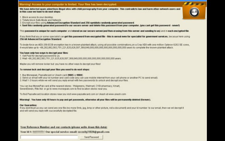 Economía | La amenaza se apodera de la información de usuarios y los extorsiona para recuperarla La PF alerta sobre amenaza cibernética contra empresas La amenaza se apodera de la información de usuarios y los extorsiona para recuperarla Por: SUN 21 de octubre de 2013 - 16:35 hs Ventana donde los extorsionadores piden una cantidad de dinero para que los usuarios puedan recuperar su información. ESPECIAL / CIUDAD DE MÉXICO (21/OCT/2013).- La Policía Federal detectó una amenaza cibernética autodenominada "Anti-child Porn Spam Protection 2.0", por lo que lanzó una alerta a los usuarios de Internet, ya que es un intruso operado a distancia por defraudadores, quienes después de apoderarse de la información de la computadora extorsiona a los dueños para que a cambio de dinero se les entregue una contraseña que les permita recuperar sus archivos. A partir de una denuncia ciudadana elementos de la División Científica de la corporación detectaron esta amenaza cibernética que se caracteriza por atacar a los equipos de cómputo de las empresas. "Mediante el patrullaje en redes de Internet, los policías cibernéticos confirmaron que esta amenaza autodenominada "Anti-child Porn Spam Protection 2.0", es un intruso operado a distancia por defraudadores, quienes ingresan a los equipos mediante la función Escritorio Remoto", detalló la corporación. Informó que "al conseguir el acceso, el intruso deshabilita los programas antivirus que se hayan instalado para infectar el equipo y encriptar la información colocando una leyenda en un correo electrónico, donde se exige a los usuarios una cantidad de dinero a cambio de una contraseña para recuperar sus archivos". Reveló que los delincuentes que diseñaron este virus cibernético atacan principalmente a pequeñas y medianas empresas que no cuentan con la seguridad suficiente para proteger sus archivos, y sus usuarios utilizan regularmente dispositivos remotos para ingresar a los servidores. Alertó que "debido a que en cada infección se ocupan parámetros distintos, actualmente no es posible recuperar la información perdida". Por ello, la Policía Federal recomienda a los usuarios de Internet a que tomen previsiones como mantener actualizados los programas instalados en sus equipos, principalmente los antivirus y evitar la exposición del "escritorio remoto" a Internet o mantenerlo deshabilitado. Asimismo, sugiere "crear respaldos regulares de la información importante que almacena en las computadoras, establecer canales de comunicación seguros como redes privadas virtuales (VPN), se recomienda el uso de contraseñas seguras en los programas, para evitar que la amenaza realice cambios en su configuración y deshabilitar cuentas de usuario que no se encuentren en uso. La Comisión Nacional de seguridad exhortó a los usuarios de la red a reportar cualquier comportamiento malicioso en sus equipos al número telefónico 088 del Centro de Atención del Comisionado (CEAC), donde se brinda atención sobre este o cualquier otro delito, las 24 horas del día, los 365 días del año. Temas Empresas Policía Federal Virus Informáticos Extorsión Recibe las últimas noticias en tu e-mail Todo lo que necesitas saber para comenzar tu día Registrarse implica aceptar los Términos y Condiciones