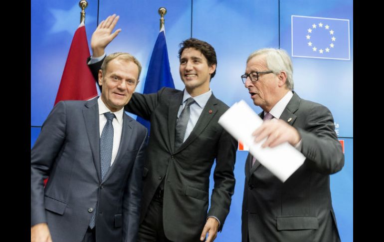 BRUSELAS, BÉLGICA (30/OCT/2016).- La Unión Europea (UE) y Canadá firmaron en Bruselas el acuerdo de libre comercio conocido como CETA, que pretende incrementar en 20 mil millones de euros al año los intercambios comerciales entre ambas economías.Firmaron el pacto el primer ministro de Canadá, Justin Trudeau, los presidentes del Consejo Europeo y de la Comisión Europea, Donald Tusk y Jean-Claude Juncker, respectivamente, y Robert Fico, primer ministro de Eslovaquia, país que ostenta la presidencia de turno de la Unión.La ceremonia tuvo lugar durante una cumbre entre la UE y Canadá, inicialmente prevista para el pasado jueves, pero postergada tras el bloqueo a última hora de la región belga de Valonia.La mitad francófona de Bélgica criticaba el CETA por falta de transparencia pero terminó validando el acuerdo tras introducir algunas "clarificaciones" en los documentos anexos que tienen valor jurídico pero que no cambian la "sustancia" del tratado, según declaró hoy a su llegada a la cumbre el presidente de la Comisión Europea."No ha habido cambios en el contenido", declaró Juncker a su llegada a la sede del Consejo Europeo, cuando celebró la jornada como "un gran día para la Unión Europea", porque el pacto con Canadá sentará las bases para los "veinte" acuerdos similares que la Unión negocia con otros países.El CETA deberá ser ahora validado por el Parlamento Europeo (PE) el próximo enero, de forma que automáticamente se aplicará al 95 por ciento.El presidente de la Eurocámara, Martin Schulz, declaró hoy que el pacto "representa mucho más que un paso positivo en nuestras relaciones bilaterales".Para tener plena vigencia, el CETA tendrá que ser ratificado por los Parlamentos de los veintiocho Estados miembros de la UE.La Comisión Europea define el acuerdo, que se empezó a negociar hace siete años, como el más ambicioso alcanzado nunca por la UE.Algunos movimientos sociales lo critican argumentando que no respeta el medio ambiente, que se ha negociado sin transparencia y que favorece a las multinacionales y no a los ciudadanos.El punto que más reticencias suscita son los tribunales privados de arbitraje (conocidos técnicamente como ICS, por sus siglas en inglés), que no se aplicarán de forma inmediata, sino una vez el CETA haya recibido el visto bueno de los Parlamentos de los países de la UE.Antes de la ceremonia de la firma, un grupo de manifestantes logró superar las barreras policiales situadas en el exterior del Consejo y varios de ellos entraron hasta el vestíbulo. La policía detuvo a 16 personas relacionadas con este incidente.