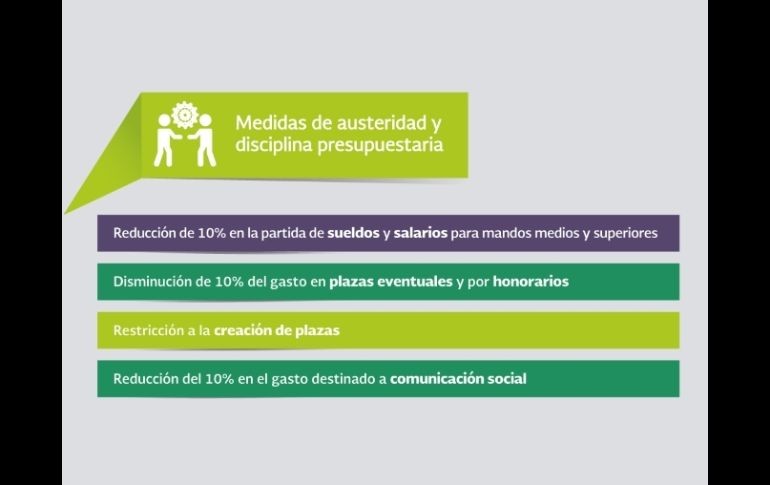 Economía | Los puntos más importantes de las medidas que aplicará Hacienda en este año 2015 Las claves del recorte al gasto público anunciado por Videgaray Hacienda hizo el anuncio de las Medidas de Responsabilidad Fiscal para mantener la estabilidad de las familias mexicanas Por: EL INFORMADOR 30 de enero de 2015 - 10:56 hs La Secretaría de Hacienda habilita un sitio web y publica una infografía para detallar el anuncio de las medidas de austeridad. ESPECIAL / GUADALAJARA, JALISCO (30/ENE/2015).- A continuación un extracto de los datos más relevantes del recorte al gasto público anunciado por Luis Videgaray, secretario de Hacienda y Crédito Público. ¿Por qué la necesidad de un recorte al gasto? Según el responsable de las finanzas del Gobierno de México, el recorte al gasto es una acción tomada a partir de tres factores externos: 1.- La drástica caída en el precio del petróleo. 2.- La volatilidad financiera asociada al inminente incremento en las tasas de interés en Estados Unidos. 3.- La desaceleración de la economía global. ¿Qué tanto se va a recortar? Con el recorte que se aplicará en 2015 el gobierno pretende dejar de gastar 124 mil 300 millones de pesos, lo que representa 0.7 por ciento del PIB. Del monto total previsto de ahorro, un 65% corresponden a gasto corriente y 35% al gasto de inversión. ¿Habrá nuevos impuestos? En su mensaje a los medios, el titular de Hacienda fue claro al mencionar que para mantener sanas las cuentas no habrá implementación de nuevos impuestos, pero sí trabajarán "con una lógica distinta" en el Presupuesto 2016. Se aclaró también que no incrementará la deuda pública. ¿Por qué se suspenden proyectos como el Tren México-Querétaro? El recorte elimina 18.1 mil millones de pesos en materia de inversión, esto se traduce en la cancelación definitiva del tren de pasajeros Transpeninsular y la suspensión indefinida del Tren de Alta Velocidad México-Querétaro. En cambio, Videgaray dijo que se garantiza la continuidad del proyecto del Nuevo Aeropuerto de la Ciudad de México y construcción de nuevas carreteras así como conservación de las existentes. ¿En qué SÍ seguirá gastando el gobierno? Videgaray informó que los programas de beneficio social como Prospera NO resultarán afectados por el recorte, además se mantendrán acciones de subsidio a la vivienda, incentivos a productores del campo, programas de empleo temporal y presupuestos a universidades públicas. La Secretaría de Hacienda habilitó un sitio de internet para difundir información más detallada sobre las medidas de responsabilidad fiscal: www.transparenciapresupuestaria.gob.mx INFOGRAFÍA Temas Economía Mexicana Secretaría de Hacienda y Crédito Público Luis Videgaray Lee También Inflación en México se acelera en septiembre; liga dos meses al alza Pensión Mujeres Bienestar: ¿Cómo es la entrega de tarjetas? Detienen a presunto extorsionador del sector limonero en Michoacán Pagos de la beca Rita Cetina: calendario oficial por letra, ¿quién cobra hoy? Recibe las últimas noticias en tu e-mail Todo lo que necesitas saber para comenzar tu día Registrarse implica aceptar los Términos y Condiciones