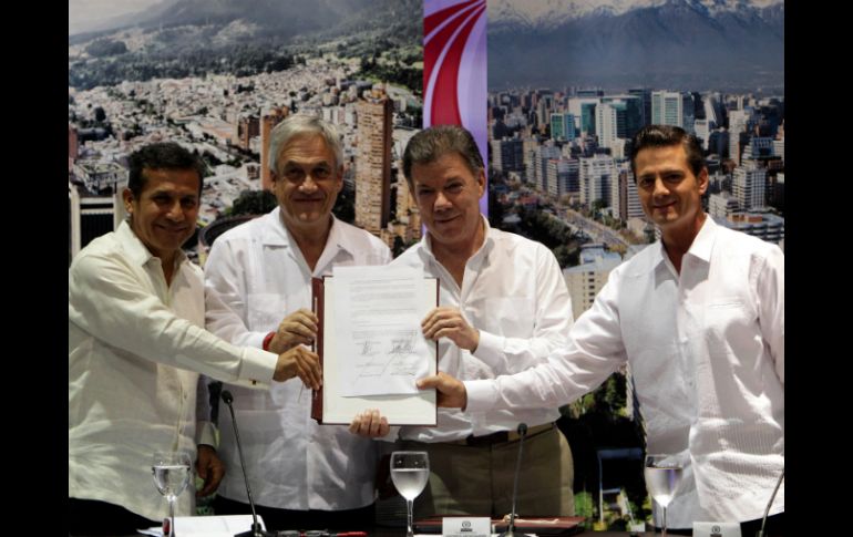 Economía | Firman el Protocolo Adicional para la liberalización de bienes, servicios e inversiones Mandatarios firman acuerdo en Alianza del Pacífico Peña, Santos, Humala y Piñera firman el Protocolo Adicional para la liberalización de bienes, servicios e inversiones Por: EFE 10 de febrero de 2014 - 16:07 hs CARTAGENA, COLOMBIA (10/FEB/2014).- Los presidentes de los países miembros de la Alianza del Pacífico firmaron hoy en Cartagena, Colombia, el Protocolo Adicional para la liberalización de bienes, servicios e inversiones entre los Estados miembros. El acuerdo fue suscrito por los mandatarios de Colombia, Juan Manuel Santos; Chile, Sebastián Piñera; México, Enrique Peña Nieto, y Perú, Ollanta Humala, en un acto con el cual se clausuró la VIII Cumbre de la Alianza del Pacífico. Con este acuerdo, calificado de "histórico" por Peña Nieto, se eliminan los aranceles del 92 por ciento de los bienes y servicios que se comercializan entre los cuatro países miembros. El ocho por ciento restante, que incluye productos agrícolas "sensibles" estará sujeto a una negociación que se espera culminar en un plazo máximo de 17 años y en la cual no está incluido el azúcar por petición de varios miembros. El protocolo firmado hoy es el primero adicional del Acuerdo Marco que dio vida a la Alianza del Pacífico, suscrito el 6 de junio de 2012 en la Cumbre de Cerro Paranal (Chile). "Este es el mecanismo de integración más innovador que México haya suscrito en los últimos años", dijo Peña Nieto. Según el mandatario mexicano, con este acuerdo, los países que integran la Alianza se preparan para hacer "una región más productiva y más competitiva". Para el presidente chileno, este acuerdo muestra que la Alianza del Pacífico "ha rendido frutos que van en beneficio de la calidad de vida de nuestros pueblos". Según Piñera, la Alianza "ha sido exitosa, una comunidad de principios" en las que tiene especial peso "el valor de la libertad, de la democracia, del Estado de derecho" y también "la innovación y el emprendimento". "Este es un paso inédito que se está dando en la región y que ha despertado el interés y la curiosidad de la comunidad internacional, por eso hay un número muy importante de países que están acreditados como observadores y otros que están solicitando su adhesión", manifestó por su parte Humala. El presidente anfitrión, Juan Manuel Santos, dijo que el protocolo firmado hoy "se traduce en el fondo en más inversión, más competitividad y por consiguiente más empleo, empleo de buena calidad". Temas Economía Internacional Enrique Peña Nieto Alianza del Pacífico Lee También Inauguran el nuevo centro de distribución Alsea en Tonalá, el segundo más grande de México México se impone a Países Bajos y respira en el Mundial Sub-17 Femenil Elena Ospina será reconocida con el homenaje "La Catrina" 2025 en la FIL Guadalajara Dónde ver EN VIVO Charros de Jalisco vs Águilas de Mexicali por la LMP 2025 Recibe las últimas noticias en tu e-mail Todo lo que necesitas saber para comenzar tu día Registrarse implica aceptar los Términos y Condiciones