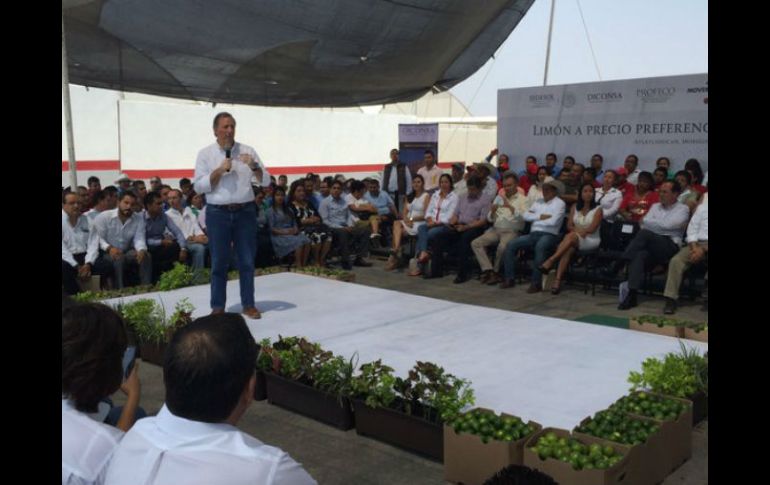 Economía | El titular de la Sedesol informa que han adquirido 200 toneladas de este producto Meade anuncia límón a 23.50 pesos el kilo en tiendas Diconsa El titular de la Sedesol informa que han adquirido 200 toneladas de este producto para las tiendas comunitarias Por: SUN 19 de abril de 2016 - 15:24 hs Meade da a conocer que la Profeco participará en estas medidas a través de la vigilancia y verificación del precio adecuado. TWITTER / @JoseAMeadeK CIUDAD DE MÉXICO (19/ABR/2016).- Con el fin de estabilizar el precio del limón, el secretario de Desarrollo Social, José Antonio Meade Kuribreña, anunció que Diconsa adquirió con productores nacionales 200 toneladas de limón para comercializarlas a un precio preferente de 23.50 pesos en más de cinco mil tiendas comunitarias. Refirió que a este esfuerzo se sumarán cuatro mil 500 lecherías de Liconsa en zonas urbanas, desde donde se combatirá el incremento del precio a este cítrico que integra la canasta básica, a fin de apoyar la economía de más de 720 mil familias mexicanas. De gira en Morelos, Meade Kuribreña dio a conocer que la Procuraduría Federal del Consumidor ( Profeco) participará en estas acciones a través de la vigilancia y verificación del precio adecuado del limón en todo el país. Refirió que para hacer frente a la demanda de este producto, más de 300 almacenes de Diconsa han recibido ya el abasto del producto, con lo que se atenderá a los consumidores y se protegerá el salario de las personas de bajos recursos. A su vez, el procurador federal del consumidor, Ernesto Nemer Álvarez, agradeció al titular de la Sedesol la oportunidad para sumarse al gabinete de Desarrollo Social, al tiempo que advirtió que no se tolerarán incrementos injustificados en los precios de los artículos de la canasta básica. Dijo que esta es la primera de muchas acciones de coordinación que se llevarán a cabo entre la Profeco y Diconsa para contribuir a la estabilidad de precios de artículos de primera necesidad. Mientras que el director general de Diconsa, Juan Manuel Valle Pereña, resaltó que para hacer frente a esta demanda, los más de 300 almacenes de la paraestatal recibieron el abasto de limón, lo cual permitirá atender a partir de esta semana a la población consumidora y, además, proteger el salario de las personas de bajos recursos que viven en zonas rurales y semiurbanas marginadas. Temas Economía Mexicana Sedesol Profeco Aumento a productos básicos José Antonio Meade Lee También ¿Por qué se pone un altar a los muertos en México? México vs. Argentina: Hora de alzar el pecho México vs. Colombia: Javier Aguirre espera un duelo de alta exigencia México vs Argentina: Estas son las posibles alineaciones para el Mundial Sub-20 Recibe las últimas noticias en tu e-mail Todo lo que necesitas saber para comenzar tu día Registrarse implica aceptar los Términos y Condiciones