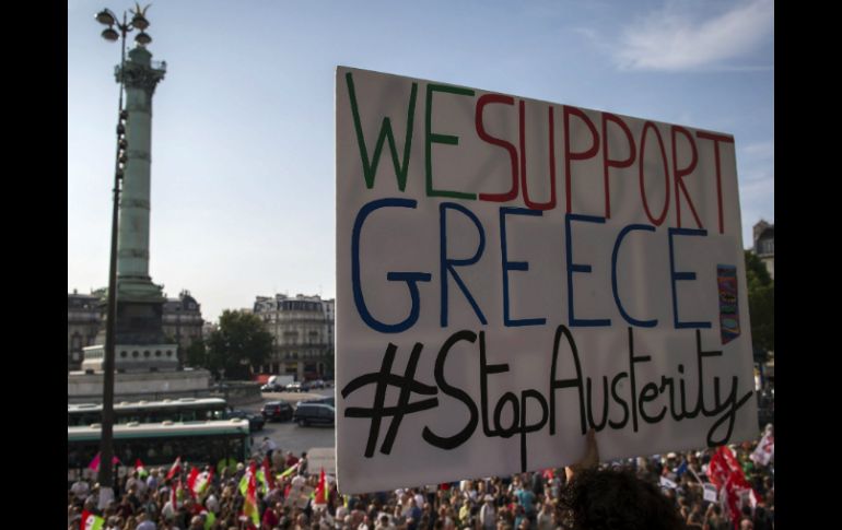 Economía | Cerca de tres mil manifestantes salieron a la calle en solidaridad con Grecia Miles de franceses expresan su apoyo al pueblo griego Cerca de tres mil manifestantes salieron a la calle con pancartas en las que se leía 'Apoyo a Grecia' Por: EFE 2 de julio de 2015 - 16:36 hs PARÍS, FRANCIA (02/JUN/2015).- Miles de franceses expresaron hoy en la calle su apoyo al pueblo griego en diferentes marchas organizadas en varias ciudades, entre ellas la capital, París, y Montpellier, Toulouse y Marsella. En París, con pancartas en las que podían leerse eslóganes como "Apoyo a Grecia. Cambiar Europa. OXI", "Unidos contra la austeridad" o "Yo soy Syriza", en referencia al partido del Gobierno griego en el poder, se celebró la marcha más numerosa, que comenzó a las 16.30 GMT entre la plaza de la Bastilla y la Plaza de la República. Entre tres mil y cinco mil personas según los observadores, o cerca de tres mil según fuentes de la policía, participaron en la manifestación parisiense. Las marchas de apoyo al pueblo griego y en defensa de la democracia fueron convocadas por el colectivo Avec les Grecs (Con los griegos), varios sindicatos y partidos de izquierdas. Ayer el primer ministro de Grecia, Alexis Tsipras, reiteró su apoyo al 'no' (oxi, en griego) en el referéndum que convocó para el próximo domingo para que los ciudadanos decidan si aceptan o no la propuesta presentada por los acreedores. Tsipras defiende que la victoria del 'no' servirá para obtener mejores condiciones en las negociaciones con los acreedores. Temas Francia Economía Internacional Deuda Grecia Crisis en Grecia Lee También México busca frenar el paso perfecto de Argentina en Mundial Sub-20 Mundial 2026 traerá derrama millonaria al país ¿Dónde ver EN VIVO el partido amistoso México vs Colombia? Dónde ver EN VIVO el México vs Argentina por el Mundial Sub-20 Recibe las últimas noticias en tu e-mail Todo lo que necesitas saber para comenzar tu día Registrarse implica aceptar los Términos y Condiciones