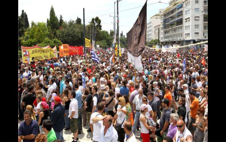 Economía | Con ello Grecia recibirá la ayuda de la UE y el FMI Parlamento griego aprueba plan de ajuste La aprobación del programa de ajuste considera recortes, subidas de impuestos y privatizaciones por valor de 78 mil millones de euros Por: EFE 29 de junio de 2011 - 08:38 hs Miles de manifestantes se concentran frente al Parlamento griego en protesta contra el nuevo plan de ajuste. EFE / ATENAS, GRECIA (29/JUN/2011).- El Parlamento griego aprobó el nuevo plan de ajuste que desbloquea la ayuda de la Unión Europea (UE) y el Fondo Monetario Internacional (FMI) para evitar la quiebra del país. En una votación ajustada el Gobierno logró el respaldo de 155 de los 298 diputados presentes en el Parlamento, dando vía libre a un impopular programa de recortes, subidas de impuestos y privatizaciones por valor de 78 mil millones de euros. En contra votaron 138 legisladores y otros cinco se abstuvieron. Uno de los votos a favor provino de la diputada Elsa Papadimitríu, de la oposición conservadora de Nueva Democracia, que rompió la disciplina de partido y apoyó el plan, a diferencia de su formación. La decisión de Papadimitríu compensó el voto negativo del diputado socialista Panagiotis Kurumplis, que ha sido expulsado del partido gobernante Pasok, por lo que la mayoría parlamentaria del Gobierno queda en 154 escaños. Poco antes de la crucial votación, el primer ministro griego, Yorgos Papandréu, había instado a los diputados a escoger entre "el camino duro del cambio y la catástrofe". "La suspensión de pagos acabaría con el sistema de salud, las escuelas, reduciría las pensiones en un 80 por ciento y también los sueldos de todos los funcionarios públicos", advirtió el jefe del Gobierno. Por ello, "debemos por todos los medios evitar que se derrumbe el país, corregir los errores y avanzar con iniciativas comunes", dijo. "Hoy pedimos un voto de confianza, no al Gobierno, sino por una Grecia diferente, con perspectiva y esperanza", afirmó. La aprobación del plan de ajuste y privatización abre a Grecia la posibilidad de recibir en julio un tramo crediticio pendiente de mil millones de euros, con lo que evitará la suspensión de pagos. "Es hora de grandes cambios y de continuar los esfuerzos para poner en orden nuestro hogar. No es hora de dar un paso atrás y desfallecer", alentó Papandréu. Por su parte, el líder de la opositora Nueva Democracia, Antonis Samarás, negó su apoyo al programa de ajuste al afirmar: "Ahora no se decide si el país se derrumba, sino si damos un paso más hacia el derrumbe". Temas Economía Internacional FMI Grecia Crisis en Grecia Lee También Inflación en México se acelera en septiembre; liga dos meses al alza La creación de empleo va en caída este año Presentan Plan México ante empresarios del Foro Mundial Arranca la Expo Ganadera con 70 años de tradición Recibe las últimas noticias en tu e-mail Todo lo que necesitas saber para comenzar tu día Registrarse implica aceptar los Términos y Condiciones
