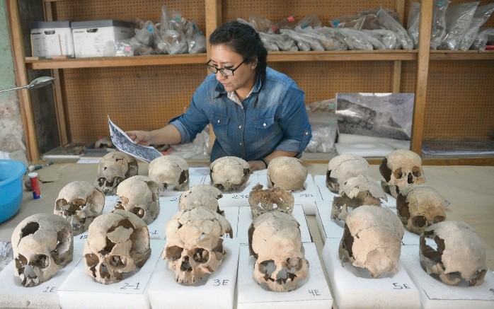En este año por terminar, el Instituto Nacional de Antropología e Historia (INAH) logró consolidar una serie de iniciativas que impactaron la creación y renovación de infraestructura para la mejora de la visita pública en distintas zonas arqueológicas del país, a la par de continuar proyectos de investigación cuyos resultados tuvieron el reconocimiento internacional por su aportación a la historia de nuestro país.En los primeros meses de 2017, Puebla estrenó dos nuevas zonas arqueológicas: Tehuacán Viejo, ubicado en las inmediaciones del poblado San Diego Chalma, y Teteles de Santo Nombre, localizada en el municipio de Tlacotepec de Benito Juárez. Tehuacán Viejo fue considerado el centro de culto y cabecera política más importante del Sur del actual Estado de Puebla durante el periodo Posclásico (1000 d.C.-1456 d.C.). El sitio popoloca se distingue por los conjuntos de edificaciones distribuidos en los desniveles de una meseta. Destacan plazas donde se realizaban ceremonias, unidades habitacionales destinadas a los gobernantes y sacerdotes, basamentos piramidales en cuya cúspide había templos, así como restos de drenaje y conductos de agua.Los materiales arqueológicos encontrados en más de 20 años de exploraciones sistemáticas son excepcionales, por ejemplo grandes esculturas de basalto con una técnica muy depurada que permite admirar los detalles de las vestimentas de los dioses y características muy claras de la calidad escultórica. Un conjunto extraordinario que puede conocerse a través del Museo de Sitio de Tehuacán.Teteles de Santo Nombre, de características arquitectónicas similares a Teotihuacan, se revela como punto importante en las rutas de comunicación y centro urbano de primer orden, que floreció hacia 400-650 d.C. En su extensión aproximada de 60 hectáreas se conservan restos de plataformas habitacionales, montículos piramidales, plazas, terrazas, zonas de circulación, construcciones aisladas y altares que hacen de este sitio el más grande y monumental del Sur de Puebla. El Museo de Sitio de Teteles quedó abierto temporalmente como Sala Interpretativa, ahí se presenta un panorama general del desarrollo de las poblaciones antiguas que ocuparon el área de Tehuacán- Zucatlán.Por otra parte, fue reabierto el Museo Regional de Cholula, también en Puebla; un espacio dedicado a mostrar al visitante lo mismo la evolución geológica del valle, que su desarrollo cultural en época prehispánica, contando para ello con un valioso acervo arqueológico de 394 piezas cerámicas y de lítica, así como algunas elaboradas en concha y otros materiales, resultado de excavaciones emprendidas por el INAH.Enclavada en el corazón de la Ciudad de México, la Zona Arqueológica del Templo Mayor cuenta ahora con un nuevo vestíbulo que permitirá un acceso controlado a los vestigios del también llamado “Huey Teocalli”. El área introductoria a las ruinas del Templo Mayor y su museo fue abierta el pasado 3 noviembre. Los visitantes ahora podrán observar los restos de un piso hecho con grandes bloques de piedra andesita, que corresponde a una parte de la plaza frente a Templo Mayor; una sección del “Cuauhxicalco”, plataforma relacionada con ceremonias del fuego y las exequias de los dignatarios mexicas; los restos de un “xocotl” o árbol sagrado; sahumadores con mangos en forma de cabeza de serpiente; una ofrenda de autosacrificio; cetros en forma de venado y serpiente, y representaciones de deidades como Xiuhtecuhtli y Tláloc, entre otras piezas. Con la participación del Gobierno de la Ciudad de México, el Templo Mayor estrenó iluminación general de algunos de sus monumentos. Justamente el Programa de Arqueología Urbana (PAU) del Museo del Templo Mayor, reveló los avances de uno de sus grandes hallazgos: el “Huei Tzompantli”. Se estima que el Gran Muro de Cráneos del Recinto Sagrado de Tenochtitlan pudo alcanzar 36 metros de largo y en promedio 12 o 14 metros de ancho, aunque por ahora, el PAU sólo ha detectado al interior de este terreno 13 metros de longitud y 6 metros de ancho de la estructura.Uno de los elementos más interesantes es un muro circular de 6 metros de diámetro hecho a partir de cráneos que previamente estuvieron expuestos en el Huei Tzompantli (según se observa por sus orificios en los temporales), unidos con argamasa de cal y arcilla. A partir de la muestra total recuperada: aproximadamente 221 individuos, sólo se ha podido asignar sexo a 3% ciento de la misma, dos terceras partes corresponden a individuos masculinos, y el tercio restante a individuos femeninos.Además de esto, se han recuperado 70 cráneos completos. En proporción, 97 por ciento son adultos, dos por ciento pertenece a infantes y 1 por ciento no se ha identificado. Estos datos han venido a revolucionar ideas que prevalecían sobre los sacrificados en honor del Dios guerrero y solar Huitzilopochtli, exhibidos en el “Huei Tzompantli”.Un equipo de la Dirección de Salvamento Arqueológico del INAH descubrió el zócalo del Monumento a la Independencia, proyectado para erigirse en la Plaza Principal de la Ciudad de México, en 1843. El proyecto del entonces presidente Antonio López de Santa Anna fracasó por diversas razones y quedó en esbozo. Los arqueólogos registraron una plataforma circular de 8 metros de diámetro y 28 centímetros de altura, el famoso “zócalo”, cuyo hallazgo consta en una placa instalada en la ahora llamada Plaza de la Constitución.La Pirámide de la Luna podría tener un conducto subterráneo. En la gran urbe del Altiplano Central, Teotihuacan, un equipo de especialistas del INAH y la UNAM realizaron un estudio con el fin de comprobar la existencia de un conducto que correría del centro de la Plaza de la Luna a dicha pirámide. Las imágenes obtenidas a través de una tomografía de resistividad eléctrica, sugieren la existencia de una cavidad recta a 10 metros de profundidad.El hallazgo confirmaría 