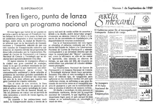 El Tren Ligero de Guadalajara llega a tres décadas de existencia transportando a más de 316 mil usuarios diarios en sus dos líneas, obras para poner en funcionamiento la tercera a principios de 2020 y planes para una cuarta.En la edición del 1 de septiembre 1989, EL INFORMADOR destacó el estreno del sistema de transporte con una nota titulada: "Tren ligero, punta de lanza para un programa nacional", como parte del sistema en las grandes capitales del país.El texto detalla los beneficios del sistema eléctrico y resalta el uso de tecnología que lo colocaba entonces a la vanguardia en México y América Latina:"El nuevo sistema de transporte ofrece a la ciudad una gran cantidad de ventajas, como lo es que no produce monóxido de carbono ni ruido, por lo que representa una alternativa importante para evitar la contaminación ambiental y darle solución al problema de movilizar grandes cantidades de personas, además de conectar dos importantes ejes de la zona urbana que registra una gran cantidad de tránsito vehicular."Con el inicio de este servicio, la Zona Metropolitana se convierte en pionera en el país al aplicar esta nueva tecnología de transporte en el país y junto con Río de Janeiro, Brasil, serán las primeras en contar con un servicio de esta naturaleza a través de trenes ligeros, en América Latina".El trayecto de la Línea 1 tiene sus antecedentes en 1974, cuando se planeó la construcción de un sistema de metro. Con ese fin se hicieron obras para crear la Calzada Federalismo, con la consecuente desapareció de la calle Moro y Escobedo, y debajo de la cual se construyó un túnel de 6.6 kilómetros, según información del Sistema de Tren Eléctrico Urbano (Siteur).Pero ante la falta de recursos para seguir con el proyecto subterráneo, se optó por un servicio de trolebuses que arrancó en 1976 con 124 unidades adquiridas en Chicago, Estados Unidos.Desde su inicio, la Línea 1 ha conectado el Periférico Norte con el Periférico Sur por el corredor Federalismo-Colón.Tras su inauguración por el entonces presidente Carlos Salinas de Gortari, EL INFORMADOR detalló en su edición del 2 de septiembre de 1989 que la Línea 1 comprendía un recorrido de 15.5 kilómetros, con más del 50% subterráneo, con 16 trenes de dos vagones cada uno fabricados por la empresa mexicana Concarril.También se refirió a los horarios:“La línea número uno del Tren Ligero operará los 16 trenes diariamente en la ruta de 15.5 kilómetros a partir de las seis de la mañana y hasta las once de la noche, con una frecuencia de diez minutos cada uno y de cinco minutos en las 'horas pico' de mayor demanda de usuarios”.Un anuncio de Siteur publicado en el periódico el día de la inauguración se muestran las 19 estaciones: Periférico Sur, Tesoro, España, Patria Sur, Isla Raza, 18 de Marzo, Urdaneta, Unidad Deportiva, Santa Filomena, Washington, Mexicaltzingo, Juárez, El Refugio, Mezquitán, Ávila Camacho, División del Norte, Atemajac, Dermatológico y Periférico Norte.También indica que la tarifa del nuevo transporte era entonces de 600 pesos por persona. Como referencia, un ejemplar de EL INFORMADOR costaba entonces 800 pesos.La estación más reciente de la L1 es la Auditorio, con el que el trazado se extendió un kilómetro hacia el Norte, también sobre Federalismo, luego de las obras que iniciaron en julio de 2014 y que incluyeron la ampliación estaciones de 60 a 90 metros y 12 nuevos vagones, y un sistema de señalización y control de trenes, entre otros conceptos.La nueva estación fue inaugurada en noviembre del 2018 y en julio de 2019 se entregaron formalmente los trabajos de moderinzación.La línea 2 se construyó a principios de los 90s y comenzó a funcionar el 1 de julio de 1994. Su recorrido en 10 estaciones es entre el Centro de Guadalajara y el Oriente de la ciudad. En conjunto con la línea 1, forman una red de 24 kilómetros.La construcción de la Línea 3 comenzó el 7 de agosto de 2014 y, según las más recientes estimaciones del Gobierno federal, comenzará a operar a principios de 2020.En su arranque trasladará a 230 mil usuarios diariamente en un trayecto que abarca 2.5 kilómetros, desde La Normal hasta Revolución.El 12 de julio de 2019 se firmó un acuerdo entre autoridades estatales y federales para la construcción de la Línea 4, que conectaría el Área Metropolitana de Guadalajara con el municipio de Tlajomulco en un recorrido de 22.5 kilómetros.IM