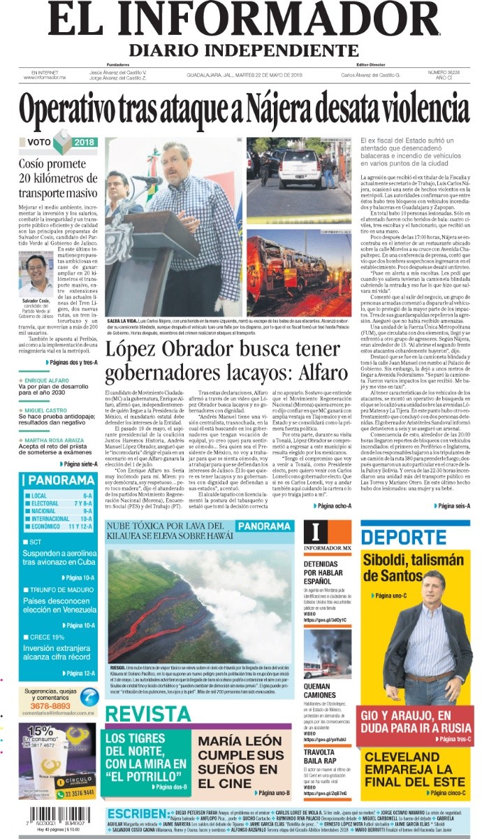 Los primeros cinco meses de 2021 han estado marcados por una serie de hechos violentos que han perturbado la seguridad entre los ciudadanos de Jalisco. Por ejemplo, el asesinato de los hermanos González Moreno, la balacera desatada afuera de un restaurante ubicado sobre una de las zonas de más alta plusvalía en la Zona Metropolitana de Guadalajara y hasta un multihomicidio registrado en la Colonia La Jauja.Pero no son los únicos casos. Jalisco también ha sido testigo de una serie de atentados en contra del sistema de videovigilancia C5, e incluso los delincuentes lograron asesinar a un líder del crimen organizado, cuyo cadáver fue exhibido durante horas en pleno Centro de Tlaquepaque, considerado un Pueblo Mágico para atracción al turismo.De acuerdo con las cifras más recientes del Secretariado Ejecutivo del Sistema Nacional de Seguridad Pública (SESNSP), entre enero y abril de 2021 se han registrado 882 víctimas de homicidio doloso, lo que se traduce en un promedio de 15 cada dos días, o bien, un asesinato cada tres horas y media. Sin embargo, si se cuentan los hechos registrados desde enero de 2018 suman ocho mil 587 víctimas de este delito en la Entidad. El promedio se mantiene desde entonces.La crisis de violencia ha sido adjudicada a una disputa entre miembros rivales de la delincuencia organizada y el gobernador de Jalisco ha exigido al Gobierno federal que asuma su responsabilidad al respecto. Éste último tomó la decisión de aumentar la cantidad de agentes federales en el Estado, pero pese a ello los hechos violentos no paran.Tres estudiantes de cine que realizaban una tarea escolar en el municipio de Tonalá fueron abordados por miembros del crimen organizado y privados de su libertad. Sus compañeros realizaron una manifestación días después para exigir el regreso de los alumnos Salomón, Marco y Daniel. La Fiscalía informó en su momento que los homicidas disolvieron a los jóvenes y sus cuerpos no han sido localizados.El entonces titular de la Secretaría del Trabajo, y ex fiscal general del Estado, Luis Carlos Nájera, fue víctima de un atentado mientras comía en un restaurante del Corredor Chapultepec. El funcionario reaccionó y logró escapar gracias a sus escoltas, aunque con una herida en la mano. Tras el atentado, los delincuentes incendiaron camiones y en uno de ellos murió un bebé. Su madre, quien iba con él, falleció meses después. El funcionario renunció para evitar más riesgos a la población.Más de 150 cadáveres sin identificar eran trasladados en un contenedor frigorífico en un tráiler por toda la ciudad. Los vecinos de los puntos en donde éste se estacionaba fueron quienes reportaron los olores de descomposición de la unidad. Una semana después de detectarlos, el gobernador Aristóteles Sandoval despidió al titular del Instituto Jalisciense de Ciencias Forenses (IJCF), y eventualmente sucedió lo mismo con el fiscal. Prometió que no volvería a ocurrir un hecho así.A plena luz del día, y pese a que tenía una orden de protección, Vanesa Gaytán Ochoa fue asesinada a manos de su esposo, Irwin Emanuel Ramírez Barajas. El agresor cometió el delito justo afuera de Casa Jalisco: la residencia oficial del gobernador, y en presencia de guardias. El hombre fue abatido, pero antes hirió de muerte a Vanesa. Ella se acercó a solicitar ayuda al saberse perseguida.Un grupo armado forzó su ingreso a una vivienda en la Colonia Villas de la Hacienda, en Tlajomulco de Zúñiga, e intentó llevarse a un hombre. Uno de los transgresores disparó un arma y el proyectil hirió a una niña de tres años, quien murió cuando recibía atención médica.El padre fue localizado con vida el mismo día en un inmueble de la Colonia El Paraíso, junto con otro grupo de personas al que también tenían cautivo.Dos integrantes de la Fiscalía del Estado fueron asesinados en una serie de ataques coordinados que tuvieron lugar en Zapopan y Tlajomulco de Zúñiga al mismo tiempo.En Jardines del Edén asesinaron a un agente y posteriormente ocurrió un fuerte enfrentamiento en donde participaron cientos de elementos de seguridad.En Villas de San Martín asesinaron a otro y murió un civil ajeno a los hechos.La ejecución de un líder del cártel local, quien comía en un restaurante ubicado en la plaza comercial de las avenidas Vallarta y Rafael Sanzio, derivó en una balacera contra los escoltas de la esposa del gobernador de Nayarit, quien también estaba allí.Martín Arzola, identificado como cabecilla del grupo, se encontró con un rival y ambos se atacaron, pero los dos fueron abatidos por los escoltas. Seis personas resultaron lesionadas.Dos vecinos de la Colonia Jardines de los Belenes, en Zapopan, murieron al tratar de impedir que unos empistolados se llevaran una camioneta durante un atraco. El hecho se consumó, pero el vehículo, en cuyo interior dormían dos niñas de dos años, fue abandonado. El padre de las niñas murió un día después. La otra víctima fue un vecino que sabía que las menores estaban en el auto.Mientras departía en un restaurante en Puerto Vallarta, y al dirigirse al baño, el ex gobernador de Jalisco, Aristóteles Sandoval, fue asesinado al ser atacado a balazos por la espalda. “Lo que acabamos de vivir no sólo es un homicidio, es un desafío para el Estado mexicano”, destacó el actual mandatario. Los empleados del bar en donde ocurrió el homicidio fueron detenidos, pues manipularon la escena del crimen, pero después quedaron en libertad.Una balacera se desató a plena luz del día en un restaurante ubicado en la Avenida Real Acueducto, en una de las zonas de mayor plusvalía en la Zona Metropolitana de Guadalajara. Entre 10 y 15 hombres armados se llevaron a un comensal. Los videos de la balacera fueron captados por ciudadanos desde distintos ángulos. Hasta el momento se desconoce la identidad de la persona que se llevaron.Un grupo armado disparó en contra de 11 personas que bebían alcohol en la banqu