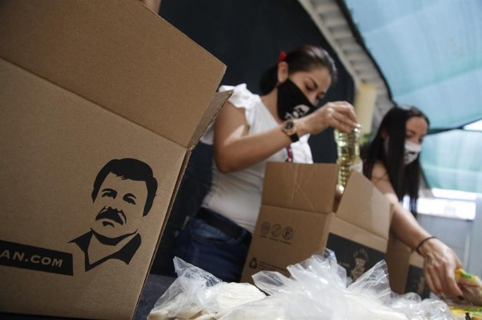 Alejandrina Guzmán, hija de Joaquín "El Chapo" Guzmán, regaló en los últimos días despensas con el nombre e imagen del narcotraficante a adultos mayores que están aislados en sus casas para evitar contagios del coronavirus SARS-CoV-2 (causante de la enfermedad del COVID-19), en Guadalajara.Al menos 480 cajas con alimentos y artículos de higiene han sido repartidas desde el 13 de abril en barrios pobres de la zona conurbana de Guadalajara.Las despensas han sido repartidas por trabajadores de la marca de ropa "Chapo 701", una empresa propiedad de Alejandrina Guzmán, y con la que ella ha buscado ensalzar la historia y la figura de su padre."La intención es dar un poco de ayuda a los menos favorecidos en un momento difícil para la sociedad mexicana", explicó este jueves a Efe Julio Campos, presidente de la empresa."Es algo que como seres humanos debemos de aportar, si algo nos duele como sociedad es la descomposición social, y esta es una acción que nos debe generar la incertidumbre de que en algún lado sí hay quien quiera apoyar y quien quiera ayudar", señaló.El directivo explicó que lo que se pretende con la entrega de estas despensas es "decirle a la gente que no nos voltee a ver con esa temática con el crimen organizado, a la figura de don Joaquín como narcotraficante".Las despensas están dirigidas especialmente a personas de más de 60 años que no pueden valerse por sí mismas o que deben salir a trabajar para poder comer, detalló."Son trece productos de la canasta básica, con una duración aproximada de una semana, va dirigido hacia el público de la tercera edad concretamente. Hemos pedido en redes sociales que (la gente) nos refieran con ese público, no queremos equivocarnos y que llegue la ayuda donde no debe de llegar", dijo en entrevista.Explicó que los fondos para ofrecer esta ayuda provienen de la fundación creada por la hija de "El Chapo" Guzmán y de un porcentaje de las utilidades que ha generado la empresa por comercializar ropa, accesorios, artículos de piel y bebidas alcohólicas."No estamos haciendo una mala acción ni mal uso de los recursos; al contrario, somos muy transparentes", detalló.Artículos como arroz, frijol, azúcar, galletas, varios tipos de pasta para sopa, puré, aceite y papel higiénico conforman esta ayuda denominada "Chapo despensa", que es entregada a las personas en una caja con el rostro y el logotipo de la marca Chapo 701 y una carta firmada por Alejandrina Guzmán."Para nuestra marca 'Chapo 701' es crucial el poder ayudar a todos los mexicanos menos favorecidos: nuestros adultos mayores quienes nos han enseñado un legado de respeto y tradiciones", dice la carta.A algunos adultos mayores que deben salir a vender sus productos también les obsequian gel antibacterial o cubrebocas de tela con la imagen del capo, quien cumple una condena de cadena perpetua en Estados Unidos por narcotráfico.Campos prevé que la ayuda se extienda por varios días más, pues afirma que han tenido muchas peticiones desde redes sociales para hacer llegar alimentos a personas vulnerables.A inicios de abril, medios de comunicación reportaron que presuntos miembros del Cártel Nueva Generación repartieron despensas a personas que no pueden salir de sus casas en la costa sur de Jalisco, a nombre de su líder Nemesio Oseguera Cervantes "El Mencho".La figura de Guzmán Loera, quien cumple una condena de cadena perpetua en Estados Unidos por narcotráfico, forma parte del imaginario cultural de los mexicanos y se ha potenciado con series de televisión y la comercialización de diversos productos.JM