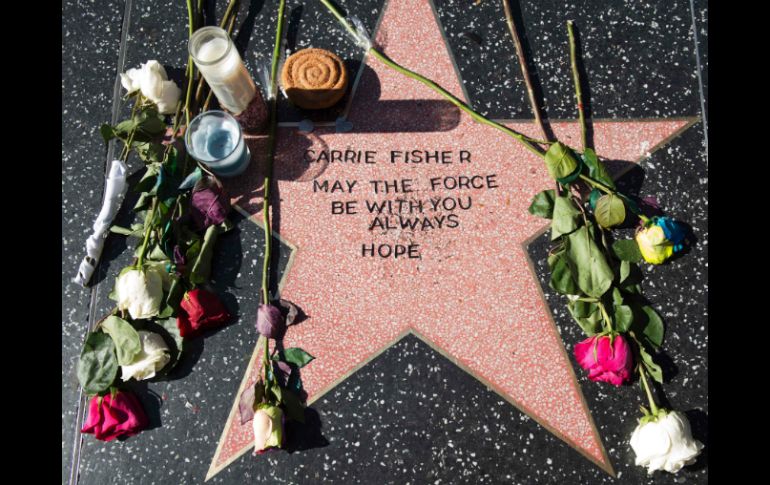 LOS ÁNGELES, ESTADOS UNIDOS (28/DIC/2016).- Los admiradores de Carrie Fisher han creado una estrella para la fallecida actriz en el Paseo de la Fama de Hollywood.Un grupo de fans se apoderó de una estrella en blanco en el Hollywood Boulevard y pegaron letras para escribir su nombre y la frase "que la fuerza esté contigo para siempre". También colocaron velas y flores alrededor de la estrella.Fisher no tenía una estrella oficial en el Paseo de la Fama, pero los administradores de la atracción turística de Los Angeles permitieron temporalmente el homenaje para darle a los fans un lugar para despedirse.También ha habido un resurgimiento de los libros de la actriz de "Star Wars" y humorista desde su muerte ocurrida el martes.Fisher, la hija de la actriz Debbie Reynolds y el cantante Eddie Fisher había estado hospitalizada desde el viernes, cuando un grupo de paramédicos atendió a una paciente en un aeropuerto de Los Angeles.Su más reciente libro, "The Princess Diarist", encabezaba la lista de los más vendidos de Amazon el miércoles. "Wishful Drinking" y "Postcards From the Edge" también estaban entre los 10 más vendidos de Amazon, mientras que "Shockaholic" se encontraba en el puesto 57.Cinco de los 10 libros más vendidos de la lista "Movers and Shakers" de Amazon, que mide los títulos que tienen el mayor ascenso de ventas en un periodo de 24 horas, fueron escritos por Fisher. La lista también incluía el libro de Courtney Carbone "I Am a Princess", sobre el personaje de Fisher la princesa Leia, en el puesto número 11.HBO, que transmitirá el documental "Bright Lights: Starring Debbie Reynolds and Carrie Fisher" el próximo año, anunció una transmisión especial de Año Nuevo del monólogo de comedia de Fisher "Wishful Drinking".El canal calificó a Fisher como "una gran amiga y un raro talento que nos dejó con muchas memorias perdurables, con su maravilloso sentido del humor y su perspectiva única y honesta de la vida".El público también volverá a escuchar la voz de Fisher en dos nuevos episodios de la comedia animada de Fox "Family Guy".Fisher retomó su papel como Angela, la jefa de Peter Griffin (Seth MacFarlane) en una cervecera. Las fechas en las que serán transmitidos aún no han sido anunciados, dijo Fox el miércoles.Mientras tanto el cómico Steve Martin quedó en medio de una discusión en las redes por un tuit que publicó y luego borró en el que decía: "Cuando era joven Carrie Fisher era la creatura más hermosa que hubiese visto. Resultó ser inteligente y brillante también".Martin fue criticado por enfocarse sólo en su apariencia en vez de su trabajo, pero a su vez estas críticas fueron señaladas como una lectura demasiado reactiva a su homenaje.