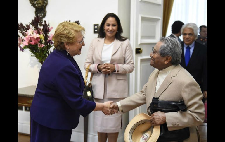 SANTIAGO DE CHILE, CHILE (26/ABR/2017).- La presidenta chilena Michelle Bachelet recibió hoy en el Palacio de La Moneda, sede del ejecutivo, al cantautor mexicano Armando Manzanero, quien se encuentra en este país para realizar algunos conciertos. En la reunión también estuvieron presentes el pianista chileno Roberto Bravo y la violinista chilena Montserrat Prieto, además de la esposa de Manzanero, Laura Villa, y el embajador de Chile en México, Ricardo Núñez. En breves declaraciones a periodistas, el músico mexicano agradeció la audiencia con la jefa de Estado chilena e invitó a todos los chilenos a los conciertos que ofrecerá a partir de este miércoles en esta capital. A sus 81 años de edad, Manzanero dijo que se mantiene vigente por su sistema de vida y porque "soy una persona positiva. No soy un tipo que padezca depresiones. Además físicamente soy indígena maya, con lo que mi vigor y salud es a veces superior al resto". En una entrevista con Televisión Nacional de Chile (TVN), el reconocido cantautor confesó que le dio "mucha pena" conocer los recientes líos legales que tiene su compatriota Luis Miguel, con quien trabajó en el disco "Romances". "Verlo me da mucha pena y sentimiento porque es una persona muy talentosa. Es una persona que ha dado emociones y alegría a millones, y que de repente ya no lo esté haciendo, pues, es lamentable", precisó. Aclaró que no es amigo de Luis Miguel y que "yo mantuve contacto con él sólo cuando estuvimos trabajando", tras lo cual comentó que en sus presentaciones en Chile tendrá la colaboración de los chilenos del Inti Illimani Histórico.