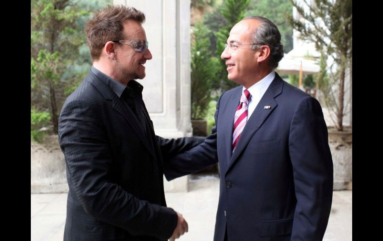 Entretenimiento | En una reunión en Los Pinos, hablan sobre pobreza y transparencia Bono pide a Calderón liderar acuerdos a favor de la humanidad El Mandatario mexicano se refiere al músico como 'un gran personaje Por: EL INFORMADOR 12 de mayo de 2011 - 20:36 hs Felipe Calderón felicitó a Bono por su cumpleaños, que fue el 10 de mayo. REUTERS - PRESIDENCIA / CIUDAD DE MÉXICO (12/MAY/2011).- El Presidente Felipe Calderón recibió a Bono, líder de la banda irlandesa de música U2, quien le pidió que México encabece los esfuerzos de la comunidad internacional para lograr acuerdos a favor de la humanidad durante la reunión del G-20. En la residencia oficial de Los Pinos, el Mandatario felicitó a Paul Hewson, Bono, por su cumpleaños 51, y agradeció las palabras de aliento que ha expresado U2 al pueblo de México en la lucha por la seguridad, informó la Presidencia en un comunicado. La próxima reunión anual del G-20 será presidida por México y tendrá lugar en el país en el 2012. "Coincidieron en que será una gran oportunidad para concretar y fortalecer acuerdos en favor de un mejor orden mundial, sobre todo en el combate a la pobreza y acciones en favor de la salud, y de la transparencia como antídoto a la corrupción", agregó. Cerca de las 16:45 horas de este jueves se dio la reunión en la que se trataron temas como la pobreza y transparencia. A través de su cuenta de Twitter el mandatario mexicano señaló: ''Hoy me reuní con Bono. Hablamos de combate a la pobreza, violencia, malaria, sida, protección de recursos naturales. Qué gran personaje!''. En sus 35 años de existencia U2 se ha mantenido fiel al discurso político y social. La banda, que completan el guitarrista The Edge, el bajista Adam Clayton y el baterista Larry Mullen Jr., ha hablado sobre la situación política y social en México en otras ocasiones. En su gira "Vertigo" del 2006, dedicó "I Still Havent' Found What I'm Looking For" a la cantante británica Kirsty Anne McColl, fallecida en 2000 en un accidente marítimo en la isla mexicana de Cozumel. El entonces Presidente Vicente Fo, prometió que habría justicia por la muerte de MacColl. El caso fue investigado pero no identificó responsables. Con información de AP y NTX Temas Farándula Felipe Calderón U2 (banda) Lee También Brigitte Bardot, sex symbol de los 60's está hospitalizada por "una enfermedad grave" Eleazar Gómez está siendo "cancelado" de La Granja VIP 2025 por esta razón Lupillo Rivera, en la mira de la “Ley Olimpia” Belinda denuncia a Lupillo Rivera Recibe las últimas noticias en tu e-mail Todo lo que necesitas saber para comenzar tu día Registrarse implica aceptar los Términos y Condiciones