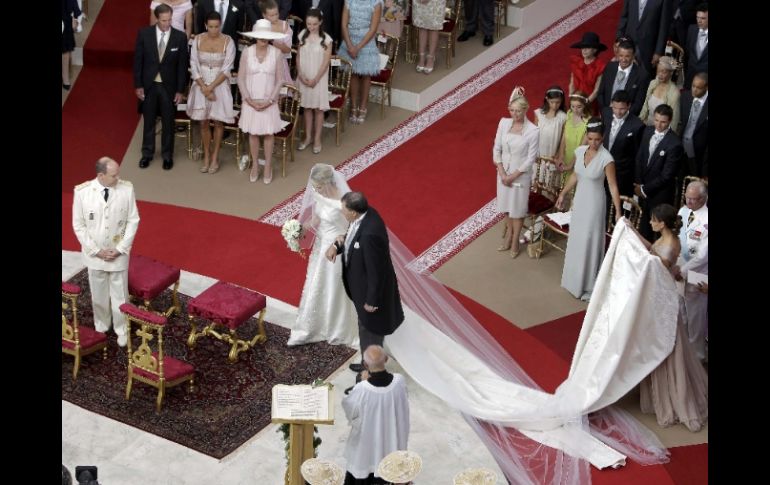 Entretenimiento | Luce un espectacular vestido de Armani en la boda religiosa Charlene de Mónaco, deslumbrante en la boda real Luce un espectacular vestido de Armani en la boda religiosa Por: EL INFORMADOR 2 de julio de 2011 - 09:12 hs MÓNACO (02/JUL/2011).- Charlene de Mónaco, que ayer se casó por lo civil con el príncipe Alberto II, deslumbró hoy a su llegada a la Plaza del Palacio principesco acompañada de su padre, Michael Kenneth Wittstock, para celebrar su ceremonia religiosa. La excampeona sudafricana de natación llevaba un traje firmado por el modisto italiano Giorgio Armani, que según fuentes de Palacio, ha necesitado más de dos mil 500 horas de trabajo y está adornado con 40 mil cristales Swarosky y con 30 mil perlas doradas. El príncipe Alberto II y la princesa Charlene de Mónaco contrajeron matrimonio religioso este sábado en el Palacio, ante cientos de miembros de la realeza, jefes de Estado y celebridades del deporte y la moda. El enlace religioso de Alberto II y la ex campeona de natación, que se casaron por lo civil el viernes, se celebra al aire libre, en el patio de honor del palacio, y no en la catedral donde se casaron los padres de Alberto, Rainiero y Grace Kelly, en 1956. Rubia, alta, de ojos azules y sonrisa tímida, Wittstock conoció a su ahora esposo hace diez años en Mónaco, donde participó en una competencia internacional de natación. Los príncipes Alberto II y Charlene de Mónaco se dieron un "baño popular" tras la celebración de su boda religiosa, con un recorrido por lugares emblemáticos del Principado hasta la iglesia en el que la novia depositó su ramo. La pareja salió de Palacio hacia las 16:30 GMT, cuando terminó su enlace, y en un descapotable, un Lexus LS 600h Landaulet concebido para la ocasión, se dirigieron hasta la capilla de Santa Devota, la misma en la que hace 55 años la fallecida Grace entregó su ramo tras su boda con Rainiero III. La ceremonia religiosa no se había caracterizado por el intercambio de miradas o comentarios cómplices entre la pareja, sino por la seriedad del nuevo matrimonio, con momentos de distensión escasos y puntuales, como cuando la soprano sudafricana Pumeza Matshikiza cantó justo después del intercambio de alianzas. No obstante, una vez dentro de la capilla, mientras la soprano Marie-Clotilde Würz-De Baets, y su hija, de once años, entonaban un canto a la Virgen, la princesa cedió a la presión y emoción del momento y derramó algunas lágrimas. La pareja había llegado a ese lugar apenas diez minutos después de salir de la plaza de Palacio y seguía acompañada por las siete damas de honor, representantes del Principado y de seis municipios colindantes. La gente, no demasiado numerosa, saludó a la pareja durante el trayecto ondeando banderas monegascas y sudafricanas, tras lo cual los novios volvieron de nuevo a Palacio para hacerse los retratos oficiales y dirigirse posteriormente a la Ópera Garnier en la que tendrá lugar la cena oficial. "Fue muy elegante, muy conmovedor", dijo a la televisión la supermodelo Naomi Campbell, que llevaba un vestido verde pálido con un hombro al descubierto. Tras intercambiar los votos, Alberto le guiñó un ojo a su esposa, quien sonrió tímidamente. Sentados en los escalones rojos aterciopelados, se dieron la mano mientras un cantante sudafricano cantó Click Song, famosa por la difunta Miriam Makeba. La maldición de Los Grimaldi La boda es la primera de un príncipe gobernante de Mónaco desde que su padre, el príncipe Rainiero III, se casó con la estrella de Hollywood Grace Kelly en 1956. Rainiero transformó Mónaco de un marchito centro de apuestas a un paraíso para millonarios, utilizando su matrimonio con Kelly para infundirle el glamour de las estrellas de cine al pequeño principado La muerte de ella en un accidente de coche en 1982 reavivó los rumores de la legendaria maldición del siglo XIII de su dinastía, los Grimaldi, que ha perseguido a su familia durante los siete siglos de gobierno. Según la leyenda, una mujer flamenca violada por un Grimaldi maldijo por toda la eternidad a la familia, diciendo que jamás podrían encontrar felicidad en el matrimonio. Carolina y Estefanía han tenido varios matrimonios importantes y desastrosos. El propio Alberto ha estado relacionado con diversas modelos y actrices, y ha admitido que es padre de dos hijos ilegítimos. Hace unos pocos días hubo rumores de descontento que amenazaron con aguar la fiesta. El Palacio negó rotundamente una noticia en la publicación francesa L'Express acerca de que Wittstock intentó escapar de la ciudad en un vuelo a Sudáfrica y que se necesitó una "infinita persuasión" por parte del príncipe y de su entorno para hacerla cambiar de opinión. Con información de EFE y REUTERS Temas Farándula Realeza Bodas Reales Lee También Belinda denuncia a Lupillo Rivera Los mejores MEMES que dejó la gran final de La Casa de los Famosos México Alexis Ayala reacciona a los señalamientos de violencia por parte de Paty Díaz Gente Bien Jalisco: Revista del 3 de octubre 2025 Recibe las últimas noticias en tu e-mail Todo lo que necesitas saber para comenzar tu día Registrarse implica aceptar los Términos y Condiciones