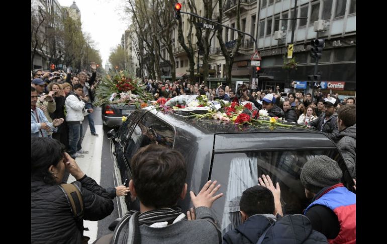 Entretenimiento | Sus restos serán trasladados al cementerio de La Chacarita, en la capital argentina Cortejo fúnebre de Cerati parte a cementerio El coche fúnebre pasará por varias calles principales de la capital argentina antes de llegar al cementerio La Chacarita, donde será enterrado Por: AP 5 de septiembre de 2014 - 11:58 hs BUENOS AIRES, ARGENTINA (05/AGO/2014).- El cortejo fúnebre con los restos de Gustavo Cerati partió hacia el cementerio de Buenos Aires, donde el rockero argentino será sepultado, luego de que una multitud rindiera homenaje a quien es considerado un innovador y talentoso compositor y un artista de influencia indeleble. El ex líder de la banda Soda Stereo, considerado uno de los compositores más influyentes del rock iberoamericano, será inhumado en el cementerio de La Chacarita, donde están enterrados o fueron cremados grandes cantantes argentinos como Carlos Gardel y Mercedes Sosa. El coche fúnebre salió a la 13:39 horas locales de la Legislatura capitalina, donde el músico fue velado desde la noche del jueves, y pasará en su recorrido al cementerio por varias calles principales de la capital argentina. El techo del automóvil estaba cubierto de flores y se abría paso por un corredor que formaba la gente, la cual aplaudía a su paso y gritaba: "No se va, Gustavo no se va". Antes de partir hacia el camposanto, la madre de Cerati, Lilian Clark, saludó emocionada desde uno de los balcones del edificio que alberga la sede del poder legislativo capitalino a cientos de fanáticos del músico que se congregaron en la calle para ovacionarla y cantar a los gritos las canciones más famosas de su hijo y del grupo que lideró durante años y marcó decisivamente desde mediados de los 80 a otras bandas de Chile, México o Colombia. "En la ciudad de la furia", "De música ligera", "Signos" y "Cuando pase el temblor" fueron algunas de las canciones que los admiradores de Cerati cantaron bajo la lluvia hasta desgañitarse. Clark se enjugó las lágrimas y saludó con la mano a los jóvenes y no tan jóvenes que le dedicaron estos y otros temas. Estaba acompañada de su hija Laura y otros familiares. La madre del cantante y guitarrista fue su más leal compañera durante los más de cuatro años en los que el músico permaneció internado en esta capital a causa de un accidente cerebrovascular. En la desapacible mañana del viernes, miles de personas aprovecharon las últimas horas disponibles para acercarse a la Legislatura a rendir respeto a Cerati, fallecido en la víspera a los 55 años de un paro cardiaco tras haber estado en coma desde mayo de 2010, producto de un accidente cerebrovascular que sufrió al término de un concierto en Caracas. El féretro cerrado con los restos del cantante fue instalado en el Salón de Honor y estuvo parcialmente cubierto por una bandera argentina y una corona de flores. Alrededor había desplegadas más flores y carteles y camisetas con mensajes de sus fanáticos. Por momentos, los visitantes aplaudieron a modo de homenaje. Antes de que los seguidores del artista se acercaran a despedirse de él, el músico fue velado en la intimidad por su madre y sus hijos, Benito y Lisa, de 20 y 18 años, así como otros familiares. Rockeros como Charly García, Pedro Aznar, Ricardo Mollo y Zeta Bosio también despidieron al artista; este último músico fue bajista y compañero de Cerati en Soda Stereo. Entre las coronas exhibidas exhibían en la planta baja y el primer piso de la Legislatura destacaron las de los cantantes Cristian Castro y Alejandro Sanz. El gobierno de la presidenta Cristina Fernández dispuso dos días de duelo por la muerte de Cerati. La noticia sobre la muerte del rockero causó gran impacto en Argentina y el resto de América Latina. El último trabajo de Cerati como solista, "Fuerza natural" (2009). A menos de una semana de su lanzamiento, encabezaba las listas de ventas en Argentina, México, Colombia y Chile. Mientras el músico estaba en coma consiguió tres Latin Grammy, a mejor álbum de rock, mejor canción de rock ("Deja Vu") y mejor diseño de empaque. Temas Música Decesos de celebridades Gustavo Cerati Soda Stereo Muerte de Famosos Lee También "The Life of a Show Girl"; escúchalo en Apple Music por solo 9 pesos Fallece influencer Fede Dorcaz en presunto intento de robo en la CDMX ¿Bad Bunny fuera del Super Bowl? Este sería el show alternativo Fallece John Lodge, bajista de The Moody Blues Recibe las últimas noticias en tu e-mail Todo lo que necesitas saber para comenzar tu día Registrarse implica aceptar los Términos y Condiciones