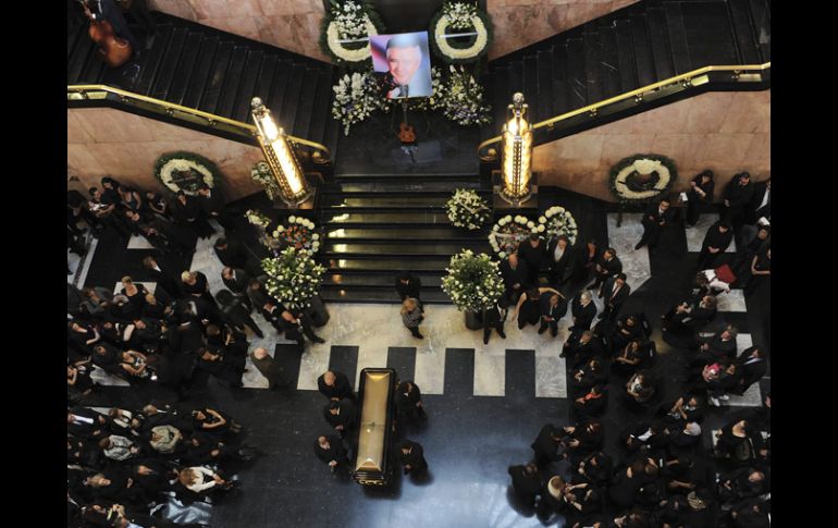 Entretenimiento | La última guardia fue realizada por la viuda de Cantoral, María Itatí Zucchi Despiden a Roberto Cantoral con el tema ''El triste'' El féretro con los restos mortales de Roberto Cantoral se despidió del Palacio de Bellas Artes Por: NTX 8 de agosto de 2010 - 19:08 hs Vea el comunicado de la Presidencia de la RepúblicaCIUDAD DE MÉXICO (08/AGO/2010).- El féretro con los restos mortales de Roberto Cantoral se despidió del Palacio de Bellas Artes con el tema 'El triste', interpretado por Gil Rivera, así como fuertes aplausos que sobrepasaron el minuto. La última guardia fue realizada por la viuda de Cantoral, María Itatí Zucchi, así como sus hijos Itatí, Roberto y Carlos, durante la interpretación del éxito 'El triste'. Gil Rivera abrazó a Carlos y de inmediato se escuchó una fuerte ovación que duró más de un minuto, para reconocer el trabajo de Cantoral, quien falleció la víspera. El féretro salió del recinto para ser trasladado a la Sociedad de Autores y Compositores de México (SACM), donde permanecerá toda la noche, y será este lunes cuando se decida el lugar donde se cremará el cuerpo del maestro Cantoral. La lluvia que se registró en la capital mexicana no impidió que las personas afuera del Palacio de Bellas Artes aplaudieran para demostrar su cariño al creador de éxitos como 'La barca' y 'El reloj'. Temas Música Decesos de celebridades Palacio de Bellas Artes Compositores Roberto Cantoral Lee También Pequeñas grandes aventuras en las Fiestas de Octubre Revelan llamada al 911 con que se reportó la muerte de Diane Keaton Spotify: mejora la calidad de sonido GRATIS de esta forma La Granja VIP 2025: Quienes son los participantes del reality que inicia HOY Recibe las últimas noticias en tu e-mail Todo lo que necesitas saber para comenzar tu día Registrarse implica aceptar los Términos y Condiciones