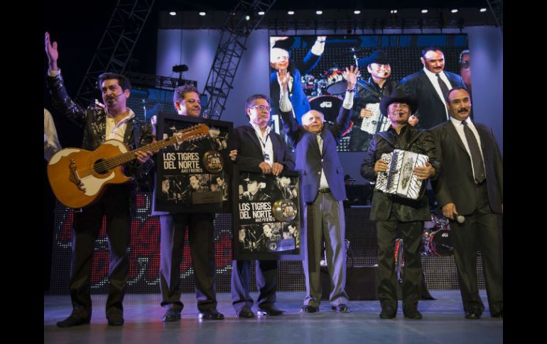 Entretenimiento | Han vendido más de 400 mil copias de su álbum ''Los Tigres del Norte and friends'' Entrega Narro Disco de Platino y doble de Oro a Los Tigres del Norte Los Tigres del Norte hicieron bailar y cantar a 10 mil personas como pocas veces se ve en un foro tan importante como el coloso de Reforma Por: NTX 30 de septiembre de 2012 - 10:28 hs La agrupación deleitó al público con temas emblemáticos como ''La camioneta gris''. NTX / CIUDAD DE MÉXICO (30/SEP/2012).- Los Tigres del Norte recibieron de manos del rector de la Universidad Nacional Autónoma de México (UNAM), José Narro Robles, Disco de Platino y doble de Oro por más de 400 mil copias vendidas de su álbum "MTV Unplugged: Los Tigres del Norte and friends". El rector de la máxima casa de estudios agradeció a nombre de los miles de mexicanos que asistieron al Auditorio Nacional al primero de dos conciertos, y a los millones de connacionales que han seguido por varias décadas la música del emblemático grupo norteño. "Hoy no voy a cantar, porque no puedo, sólo vengo a decir a nombre de todos los mexicanos las gracias por decir lo que es México, por decir lo que pasa en México y por lo que queremos que sea México", subrayó Narro Robles. Este sábado Los Tigres del Norte hicieron bailar y cantar a 10 mil personas como pocas veces se ve en un foro tan importante como el coloso de Reforma, donde sorprendieron al público al tocar corridos prohibidos que han dejado de interpretar en algunas plazas del país. Los hermanos Hernández: Jorge, Hernán, Lalo y Luis, junto con el primo Óscar, deleitaron al público con temas emblemáticos como "La banda del carro rojo", "La camioneta gris" y "El jefe de jefes", canción con la cual festejaron 15 años de vigencia. Temas Música José Narro Robles Discos de Oro Tigres del Norte Lee También De Santana y Sandra Itzel presentan 'Dile', una fusión de cumbia y sonidos modernos Jetour Soueast Guadalajara inaugura frente a Plaza Galerías Estos conciertos en CDMX están al 2x1 en Superboletos Sociales: Subasta de Arte, obras a beneficio de Helen Keller Recibe las últimas noticias en tu e-mail Todo lo que necesitas saber para comenzar tu día Registrarse implica aceptar los Términos y Condiciones