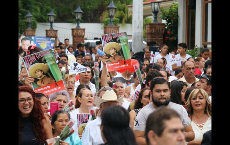 CIUDAD DE MÉXICO (05/SEP/2016).- Una centena de habitantes de Parácuaro, Michoacán, el lugar de nacimiento del "Divo de Juárez", viajaron hasta la capital para participar del homenaje póstumo y exigir que las cenizas del cantautor sean llevadas a su pueblo natal, aunque sea solo por unos momentos.Uniformados con playeras blancas con la leyenda “Parácuaro... Es bonito, es bonito y es bonito", y portando pancartas y retratos de "su Divo", se pasearon por la explanada de Bellas Artes pidiendo que los restos del cantautor puedan tener un homenaje en este pueblo de Michoacán. “Venimos a manifestarnos para que las cenizas se lleven a Parácuaro para hacerle un homenaje porque él siempre quiso estar a lado de su mama”, expresó José Antonio Villa, habitante de Parácuaro.Como él, también viajaron hasta la Ciudad otras 100 personas encabezadas por las autoridades del pueblo. “Lo que pedimos es que lo lleven aunque sea un rato, sólo para el homenaje”, dijo también una pareja que acompañaba a esta caravana que se paseo por la explanada del Palacio de Bellas Artes y la Alameda Central.Recordemos que en días pasados, el presidente municipal de Parácuaro, Noé Zamora Zamora, pidió a los hijos de Juan Gabriel que respetaran la voluntad del cantautor mexicano de ser sepultado en este poblado de la Tierra Caliente al lado de su madre, pues de acuerdo al alcalde, familiares y amigos, esa fue una petición que les hiciera Alberto Aguilera Valadez, que sus restos regresaran a la tierra que lo vio nacer.+Lee más noticias sobre la muerte de Juan Gabriel