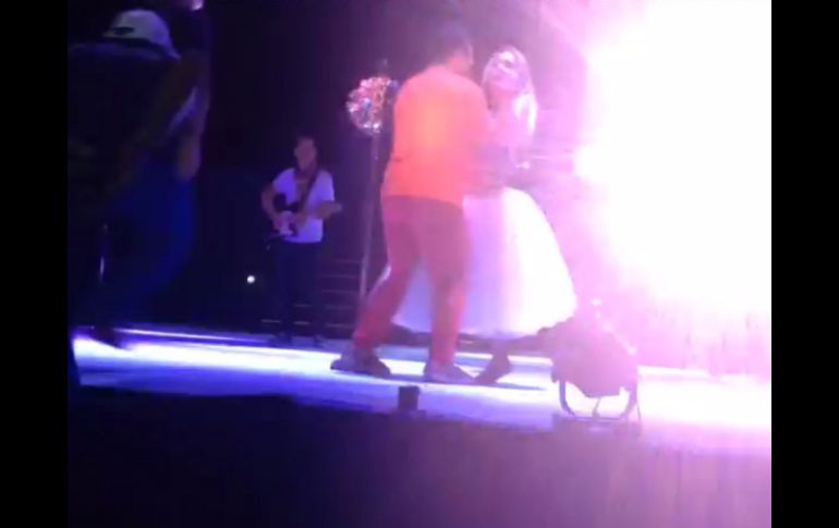 Entretenimiento | Durante un concierto en Tabasco, un hombre burló la seguridad y llegó hasta la cantante Fanático besa y tira a Belinda en pleno show Durante una presentación en Tabasco, un hombre burló la seguridad y llegó hasta la cantante Por: SUN 10 de marzo de 2014 - 11:55 hs CIUDAD DE MÉXICO (10/MAR/2014).- La cantante Belinda terminó hincada en pleno show luego de que un fan subiera al escenario y le diera efusivas muestras de su cariño. Durante una presentación ante 50 mil personas en Tabasco, un hombre burló la seguridad y llegó hasta la cantante. Además de besarla, el hombre abrazó a Belinda y fue tal su fuerza que la intérprete terminó en el suelo antes de que el equipo de seguridad lograra sacarlo del escenario. La propia Belinda compartió en Twitter un video del incidente, que no pasó a mayores. Hace unos días la cantante causó revuelo al ofrecer un show en el Carnaval de Mazatlán que abrió con sus bailarines encapuchados y con armas de fuego falsas. Temas Tabasco Conciertos Cantantes Belinda Recibe las últimas noticias en tu e-mail Todo lo que necesitas saber para comenzar tu día Registrarse implica aceptar los Términos y Condiciones