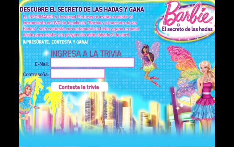 Entretenimiento | Gracias a todos por participar ¡Felicidades a los ganadores de pases para 'Barbie y el secreto de las Hadas'! El INFORMADOR.COM.MX agradece tu participación y te invita a seguir pendiente de nuestras promociones. Por: EL INFORMADOR 1 de abril de 2011 - 13:48 hs . / GUADALAJARA, JALISCO (27/MAR/2011).- EL INFORMADOR y Universal Pictures te agradecen por participar en la rifa de pases para asistir a la proyección de la película "Barbie y el secreto de las Hadas" este sábado 2 de abril. A continuación la lista de ganadores: 1.Ricardo Rivas Gonzalez 2.Cristina Marin Alatorre 3.Dolores Adriana Camarena Ramírez 4.Alejandra Diaz Pinto 5.Salomon Correa 6.Lourdes Livier Lopez Marquez 7.Beatriz Isabel Hernandez Guzman 8.Iliana Sofia Avila Florio 9.Bernardo Moreno Orozco Y Loza 10.Jorge Angel Orozco Figueroa 11.Claudia Virna Gonzalez Briseño 12.Luz Irene Sauza Anguiano 13.Rosa Margarita Mora Trujillo 14.Paola Maria Del Carmen Ortiz Vaca 15.Fabiola Contreras 16.Karina Patricia Torres Toscano 17.Elizabeth Ramirez Ibarra 18.Jocelyne Natalia Aceves Carranza 19.Priscila 20.Norma Leticia Cervantes Pantoja 21.María Rosa Rico Pérez 22.Kassandra Citlali Camargo Serrano 23.Ernesto Martin Urzua 24.Mariana Carolina Carrillo Marin 25.Victoria Mireya Rodríguez Gutiérrez 26.Ixchel Ponce 27.Eunisearriagamedina 28.Elda 29.Luis Alberto Jiménez Delgado 30.Gabriela Buenrostro Pompa 31.Mario Alberto Maldonado Silva 32.Martha Esmeralda Mariscal Barriga 33.Karen Edith Michel Peña 34.Rocio Madrid 35.Lucero Yulissa Cruz Arcos 36.Karime Guerrero 37.Hector Carretero Rodriguez 38.Aurea Emily Osornio Contreras 39.Laura Alvarado 40.Francia Victoria Sepúlveda Lozano 41.Angelica Partida 42.Rafael Arceo Chavez 43.Leon David Rodriguez Hernandez 44.Lucia Macias Rodriguez 45.Graciela Paola Curiel Moreno 46.Jose Luis Rosales Suarez Los ganadores ya fueron notificados vía correo electrónico. Recoge tus pases en las instalaciones de El Informador ubicadas en la calle Independencia número 300 en la zona Centro de Guadalajara con una copia de identificación oficial apartir de las 16:00 horas de este viernes. Temas Cine Barbie Lee También Andrew Garfield sueña con unirse a “Wolverine” en Marvel ¿Quién es quién en el spin-off de "El señor de los cielos"? Andando el camino a la distopía “Un mundo mejor”: el poder de la sanación emocional Recibe las últimas noticias en tu e-mail Todo lo que necesitas saber para comenzar tu día Registrarse implica aceptar los Términos y Condiciones